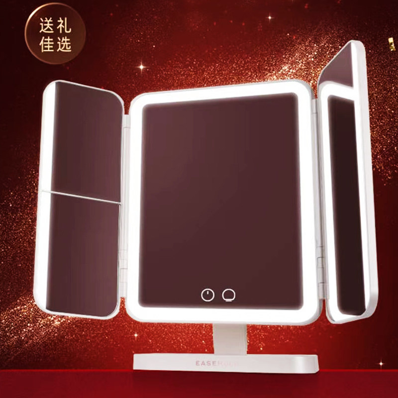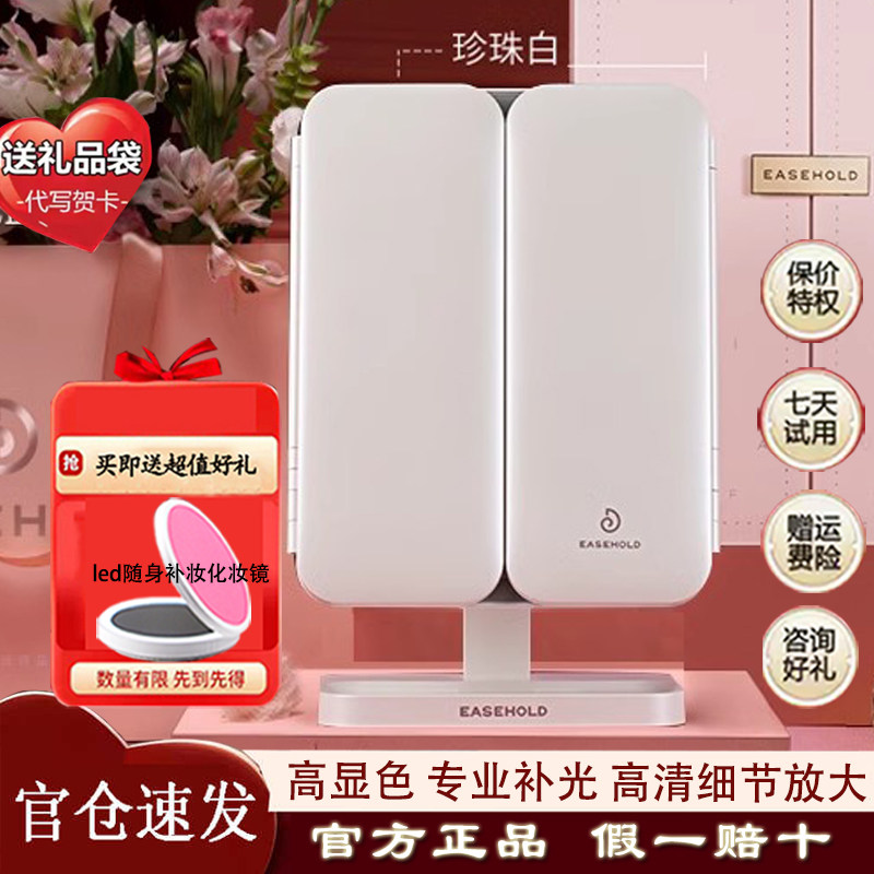 📚 easehold化妆镜轻奢高级旅行便携带盖led灯梳妆台桌面可隐藏镜子