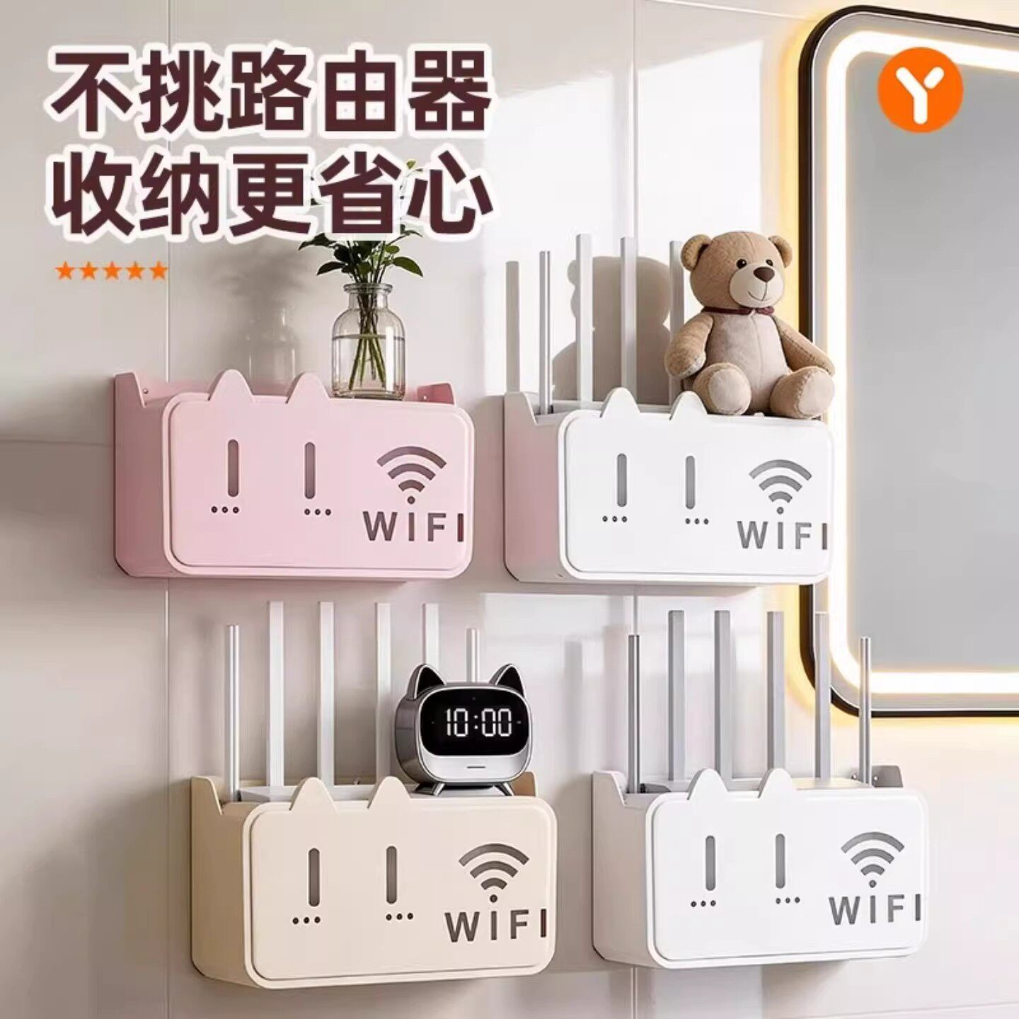 📚 路由器放置架免打孔壁挂式机顶盒固定插排插座遮挡上墙橱柜收纳筐
