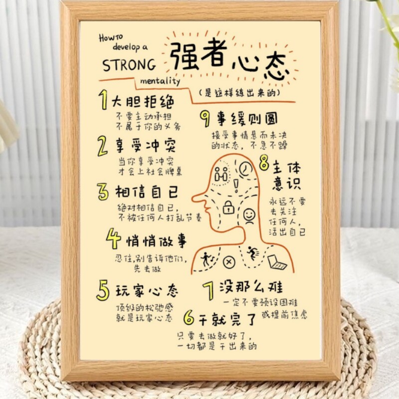 📚 自我激励强者心态摆件高颜值办公室书房宿舍简约装饰相框桌面摆台