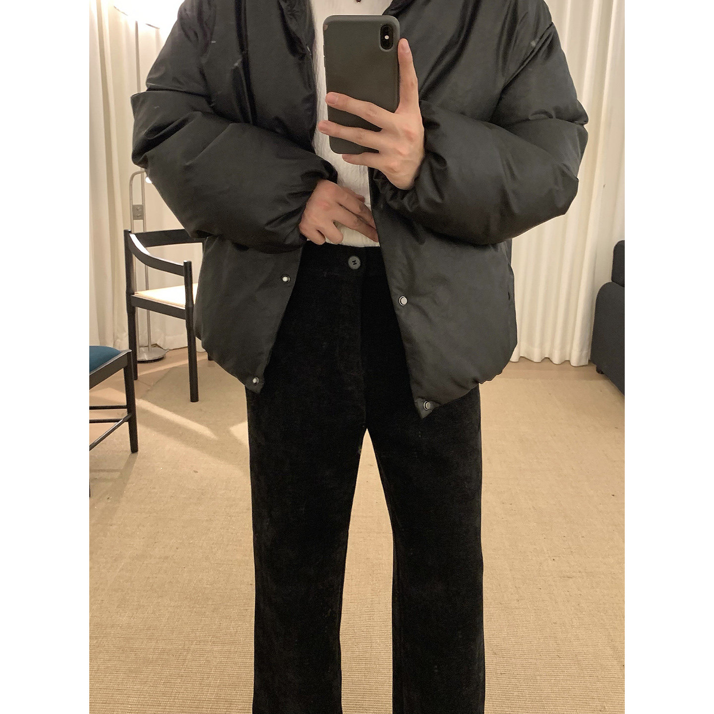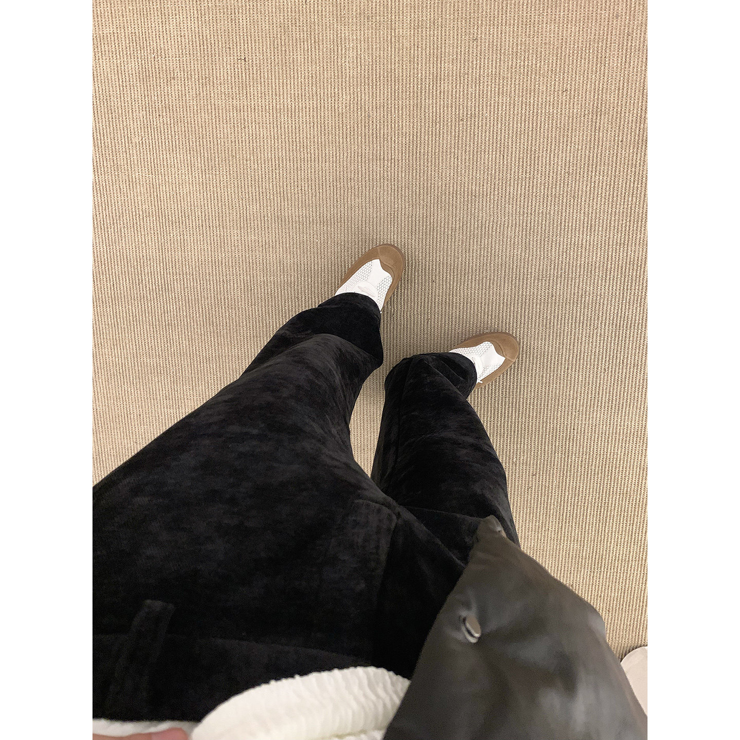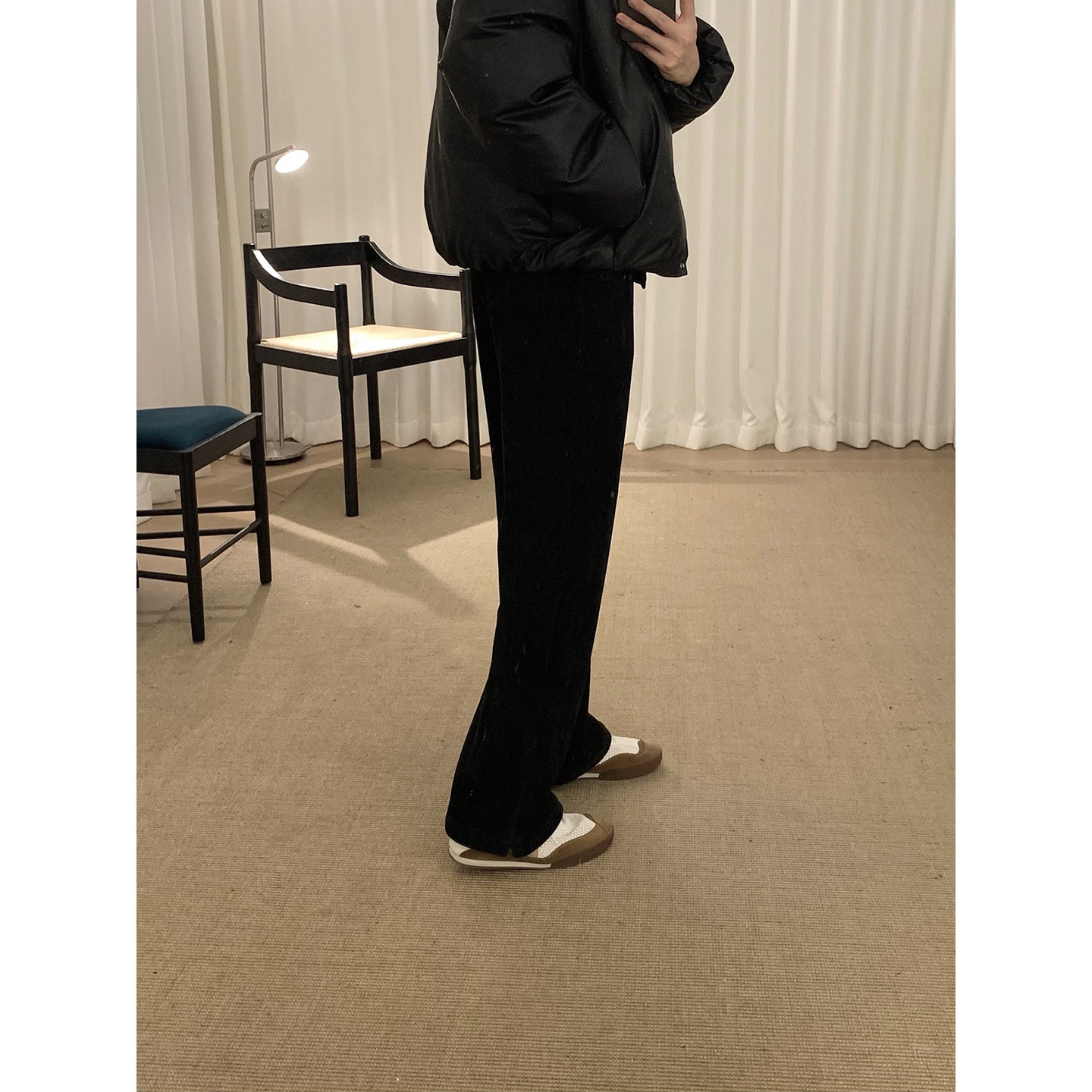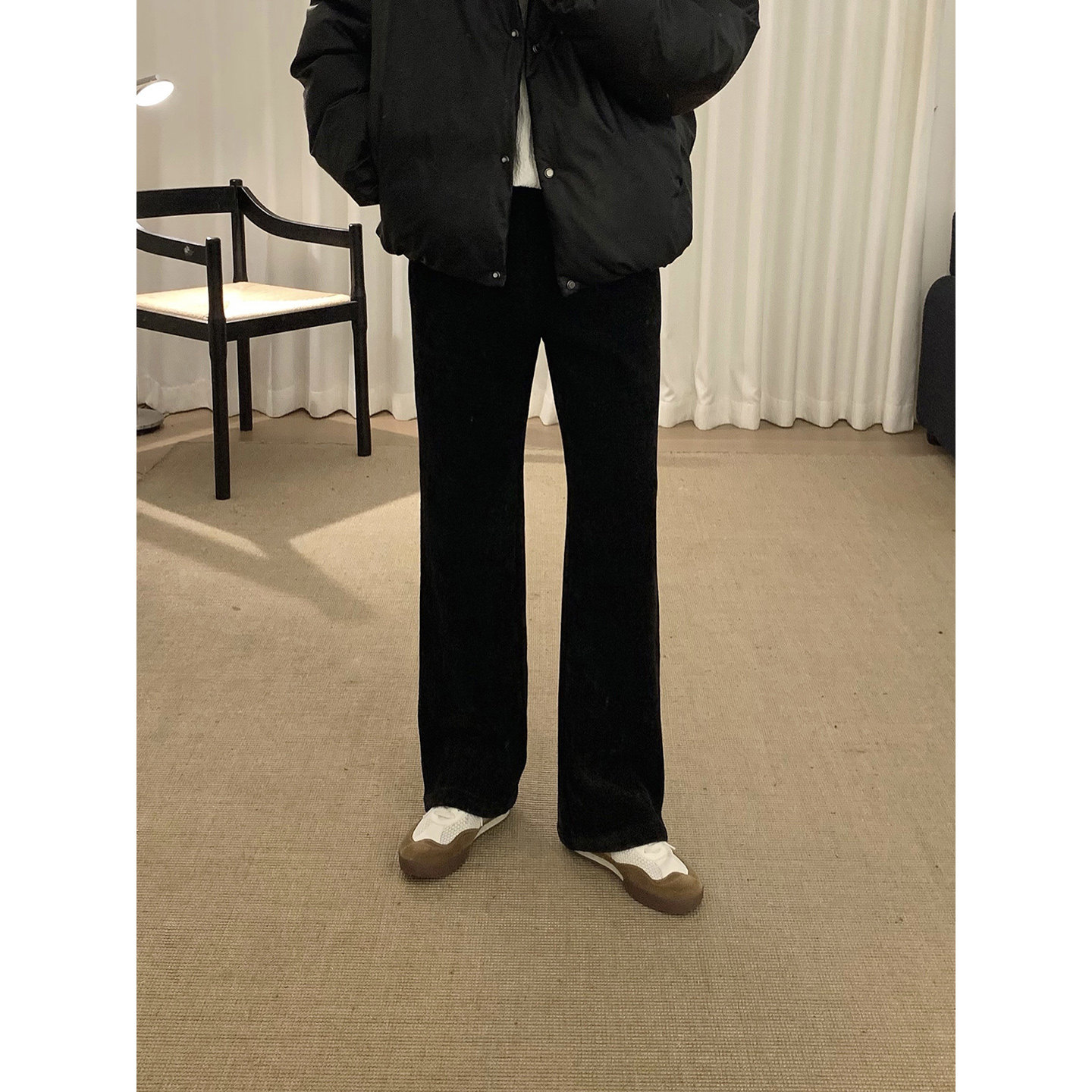 📚 阿茶与阿古黑色雪尼尔加绒裤子男款秋冬百搭基础款宽松休闲长裤