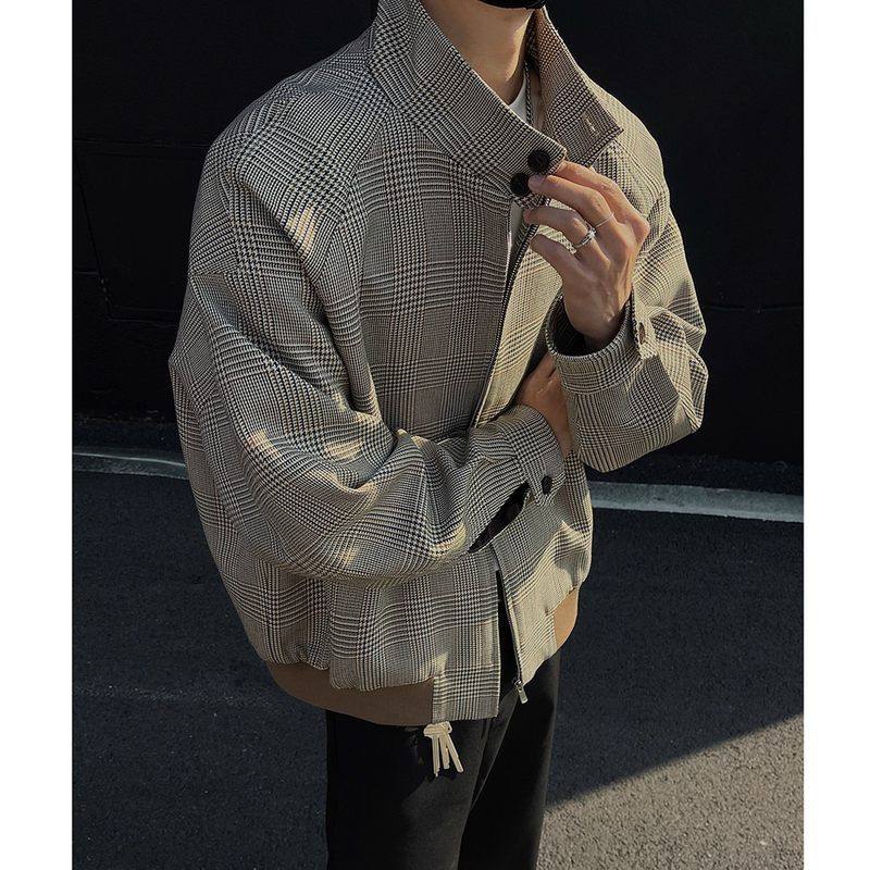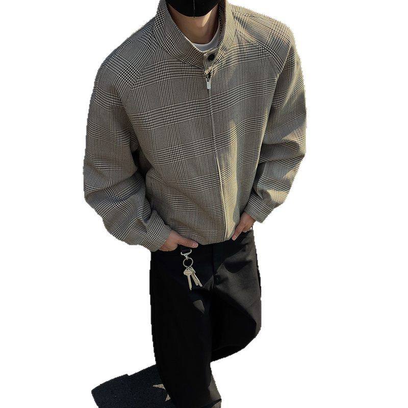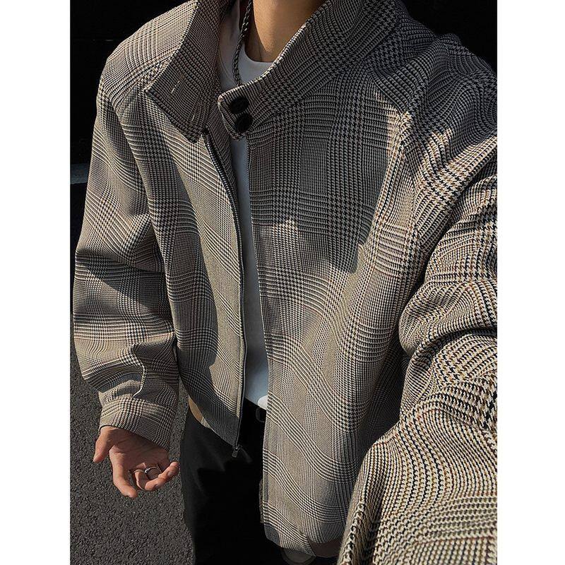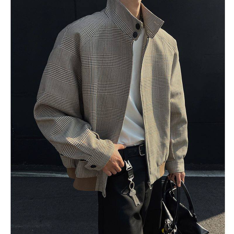 📚 美式复古千鸟格外套男款春秋高级感痞帅立领cleanfit哈灵顿夹克男