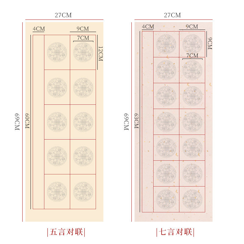 📚 鸿猷文房五开对联书法作品纸学生毛笔字考级比赛参展专用蜡染洒金27×69cm厘米加厚5言七言楹联半生熟宣纸
