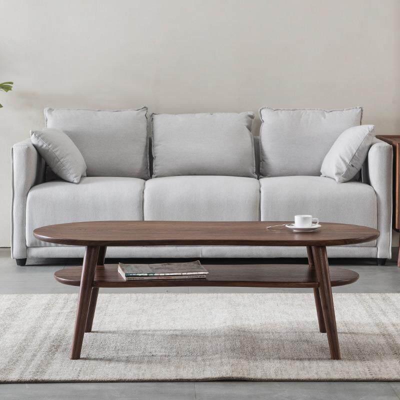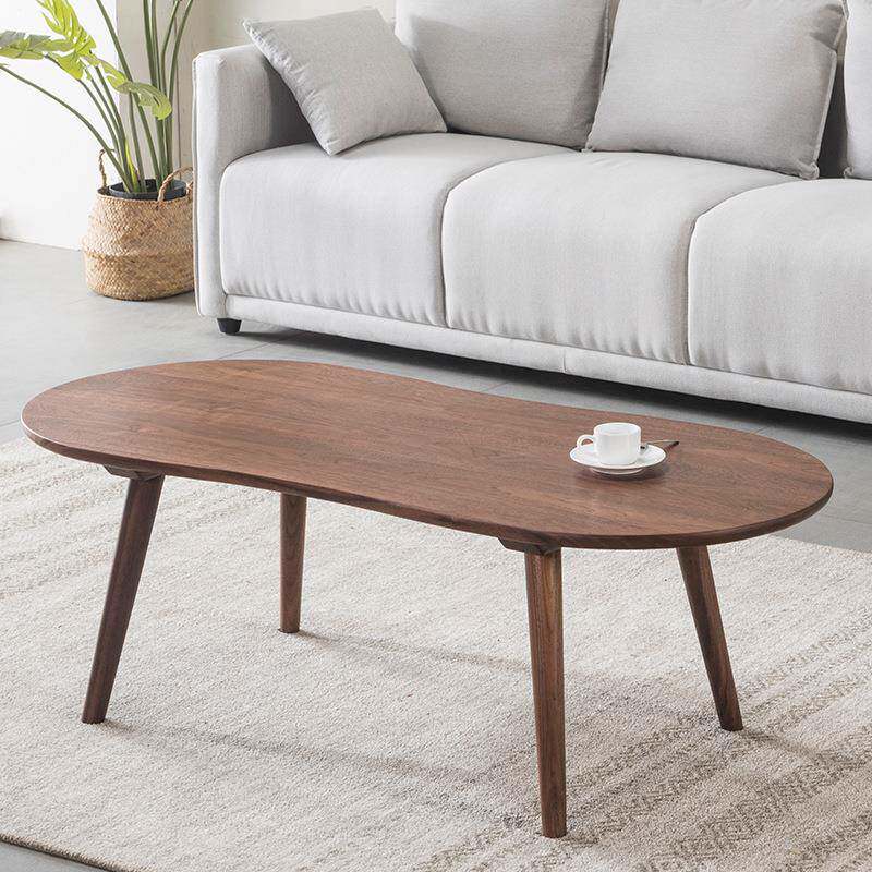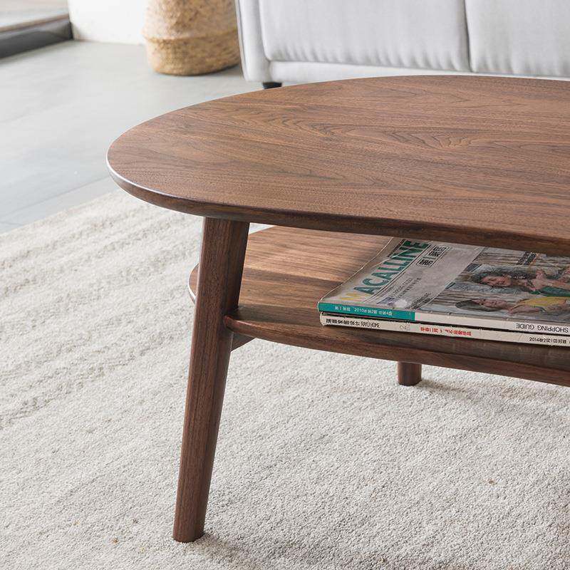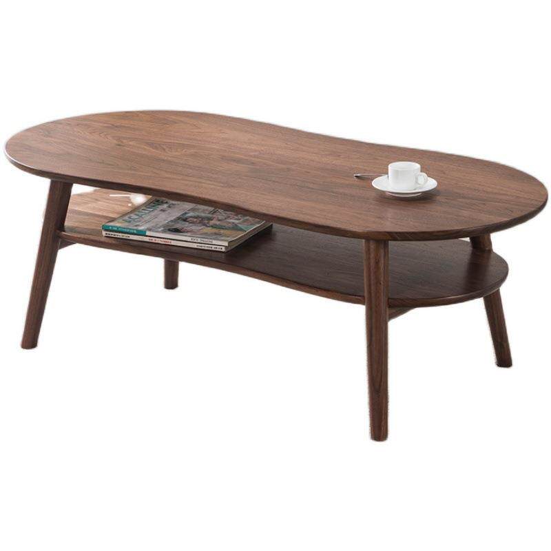 📚 北美黑胡桃木实木双层茶几樱桃木小户型日简约椭圆花生形茶几