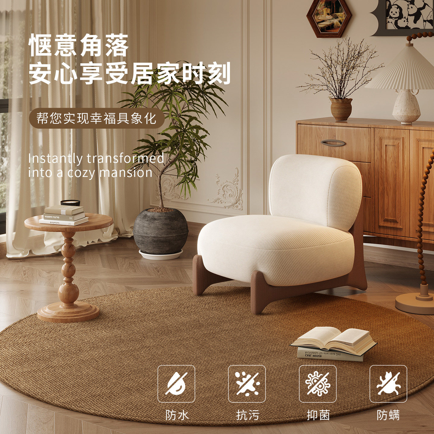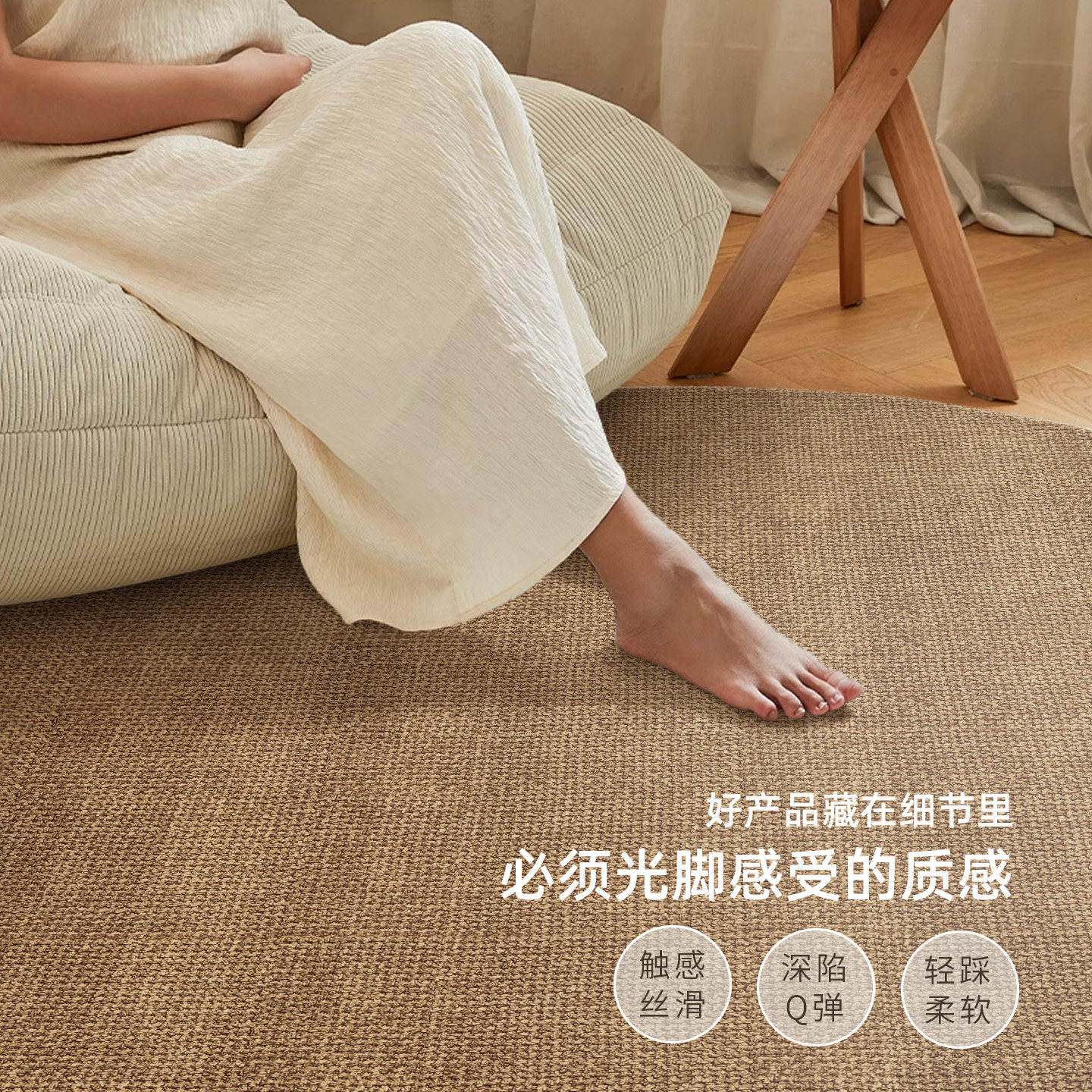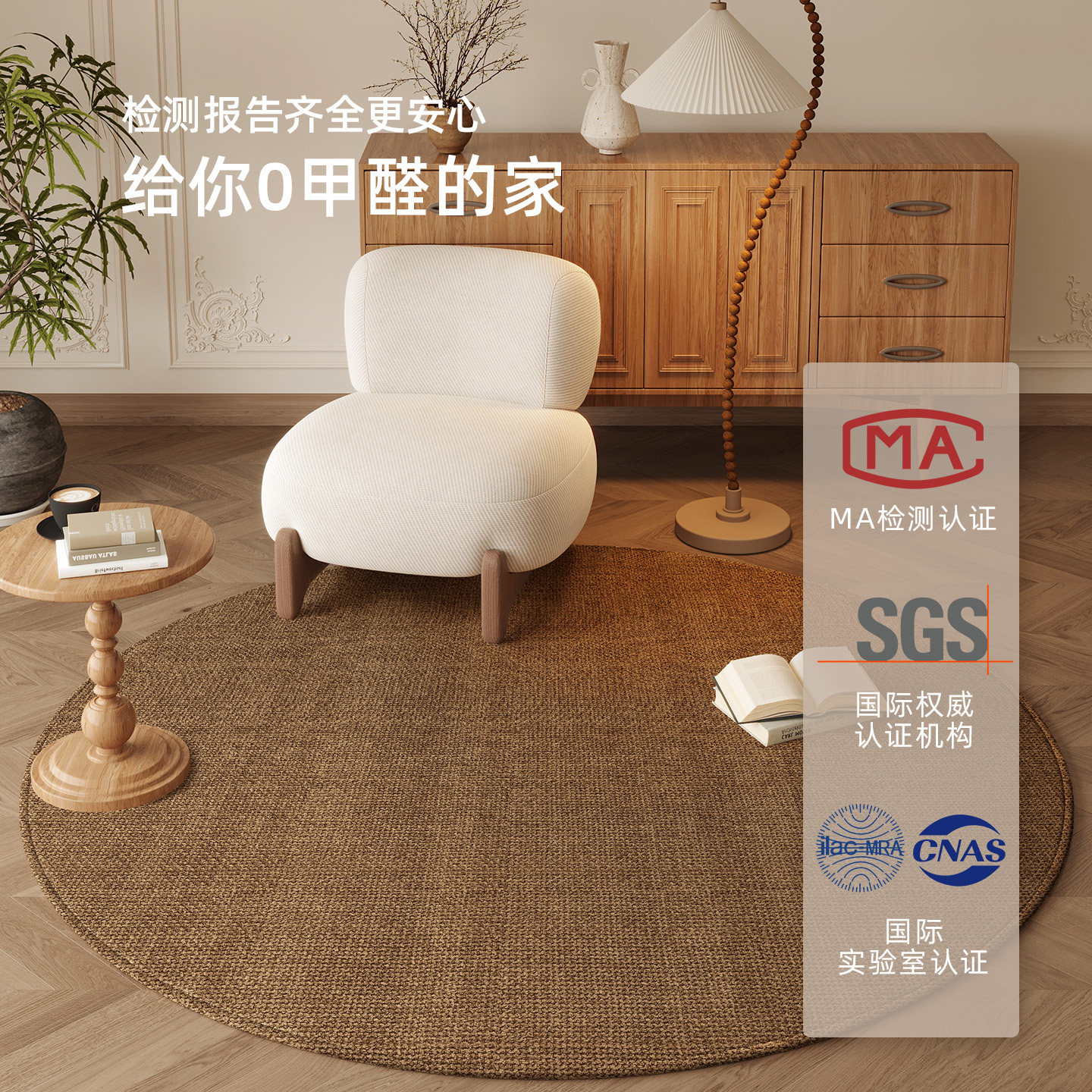 📚 圆形客厅地毯免洗可擦纯色高级感沙发茶几地垫中古风静音防滑脚垫