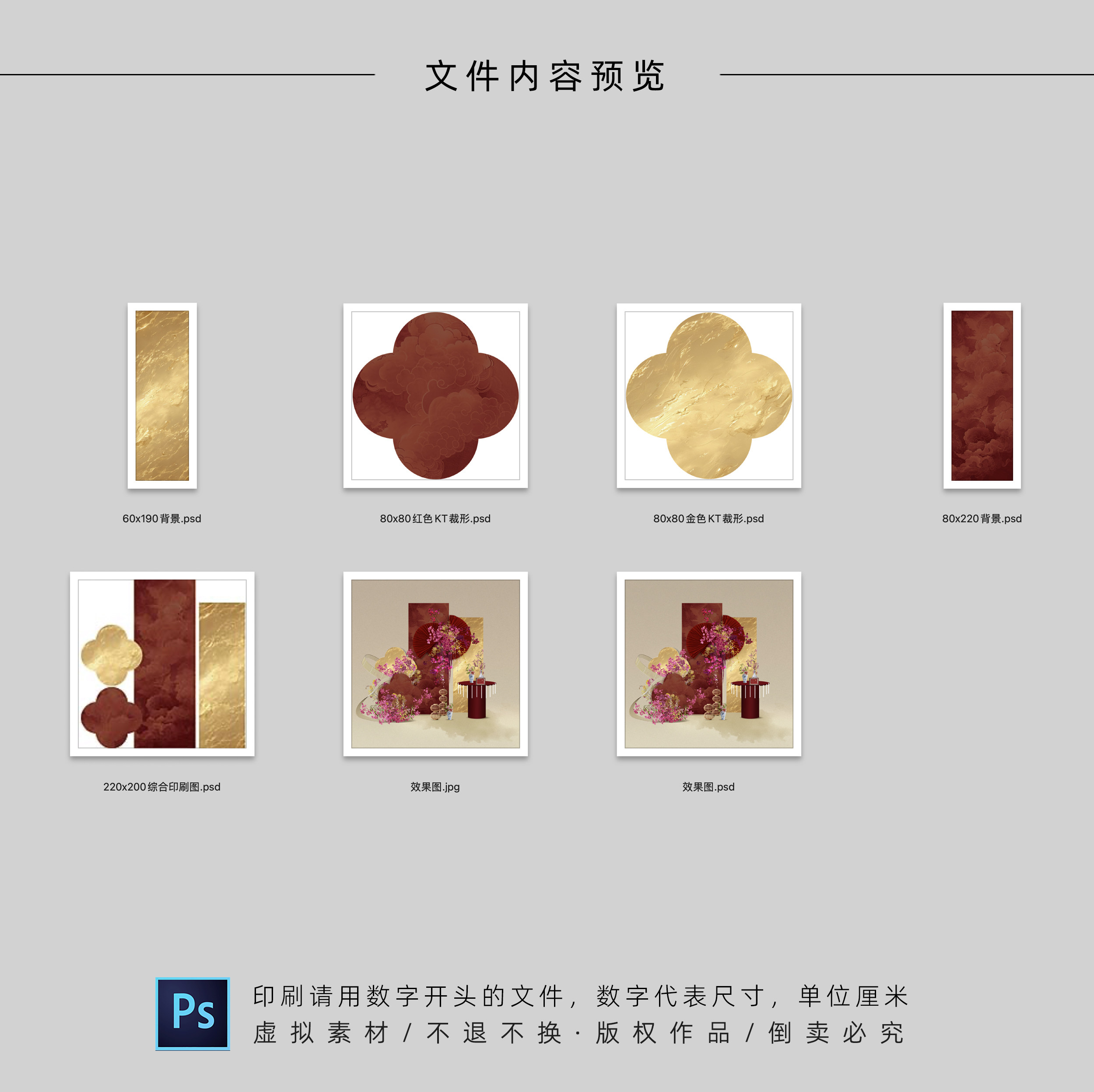 📚 红金色新中式婚礼迎宾区订婚答谢宴背景 婚房KT布置效果图PSD素材