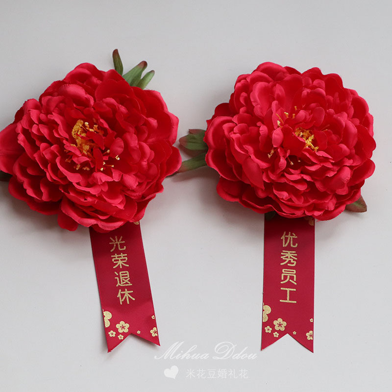 📚 表彰用大红花胸花 优秀员工光荣退休会议活动襟花开业文字可定制