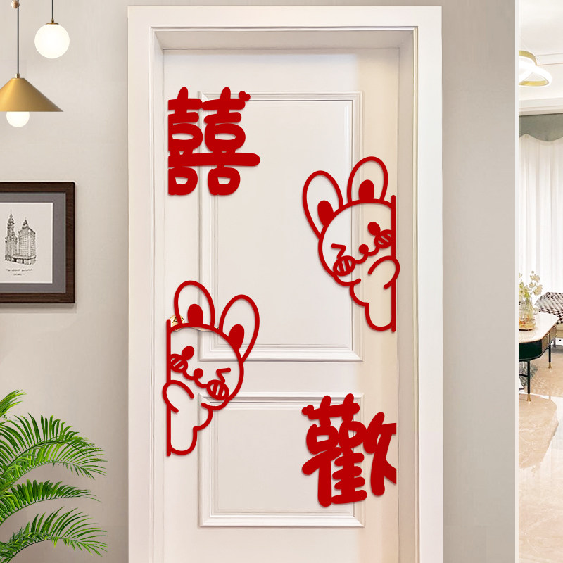 📚 婚房布置喜字贴结婚专用新房门上装饰婚礼婚庆卧室门贴纸囍字套装