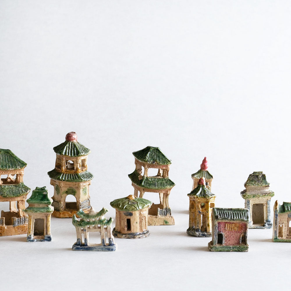 📚 日本手工制作 仿唐三彩泥玩 传统民居模型雕塑 盆栽配景 建筑篇
