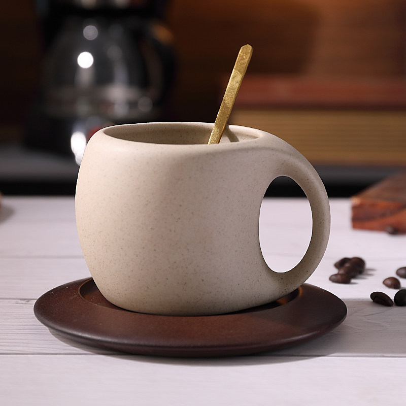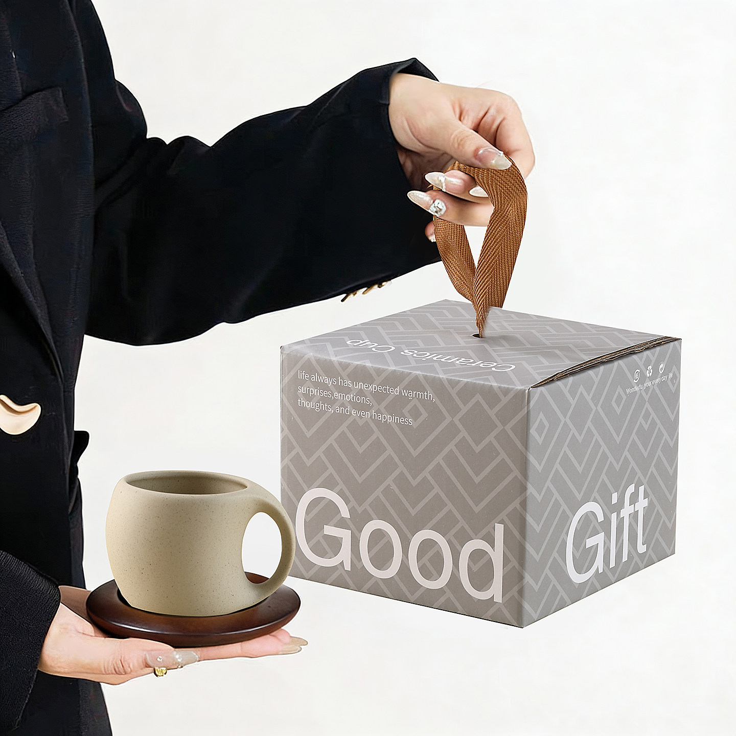 📚 陶瓷咖啡杯碟套装礼盒复古拿铁美式咖啡杯子木杯垫下午茶粗陶杯子