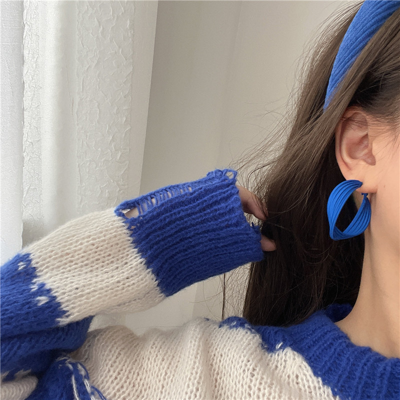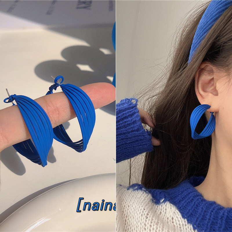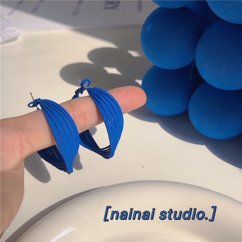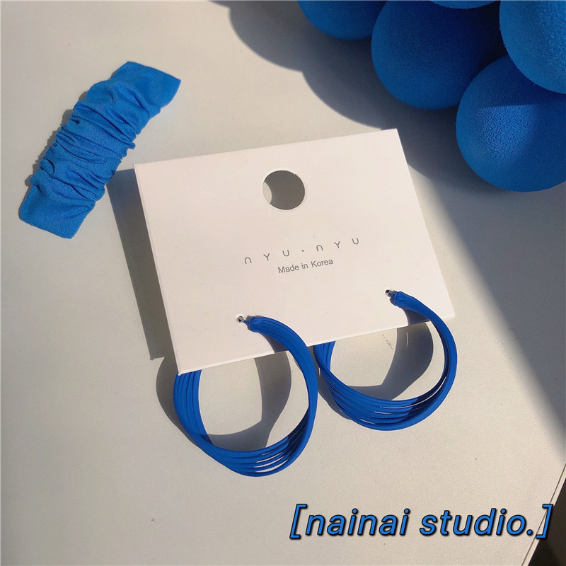 📚 克莱因蓝色耳环显瘦圆环耳钉小众 耳饰耳圈耳扣女