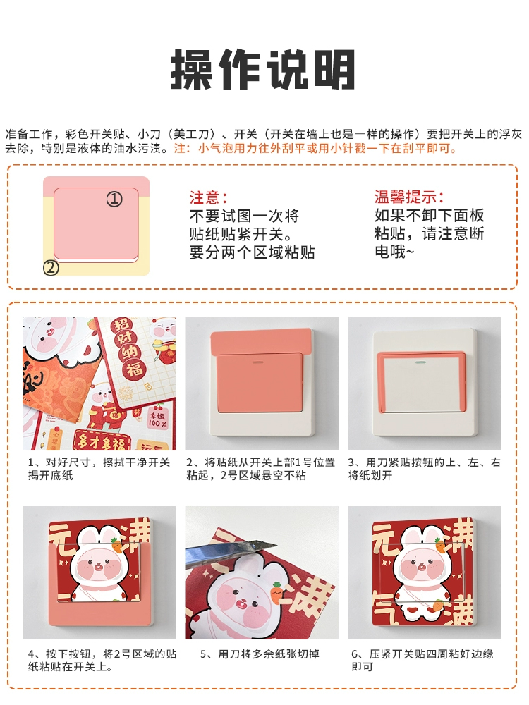 📚 插座面板遮挡贴纸开关贴纸标识自粘可移除装饰墙贴画防水双开美化