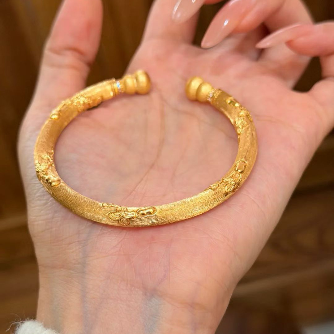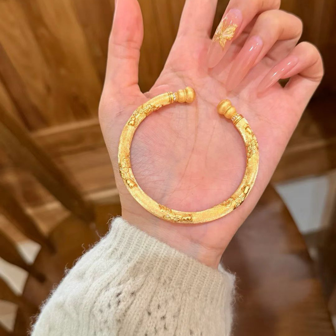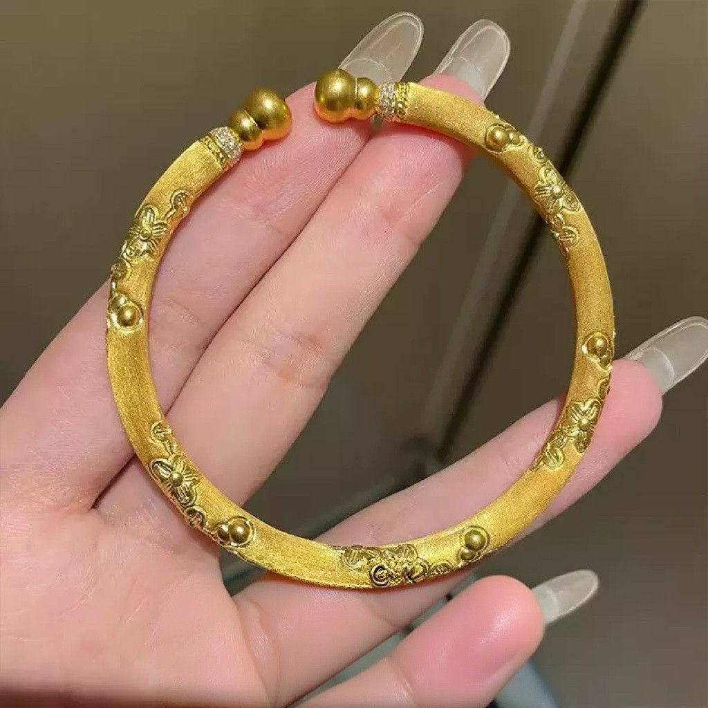 📚 樱花沙金手镯仿真黄金实心开口复古花朵新中式国风复古葫芦镯子女