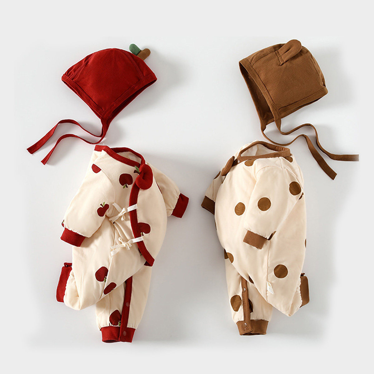 📚 哇哇新生婴儿衣服秋冬款薄棉服宝宝夹棉连体衣棉服外出服超萌新年