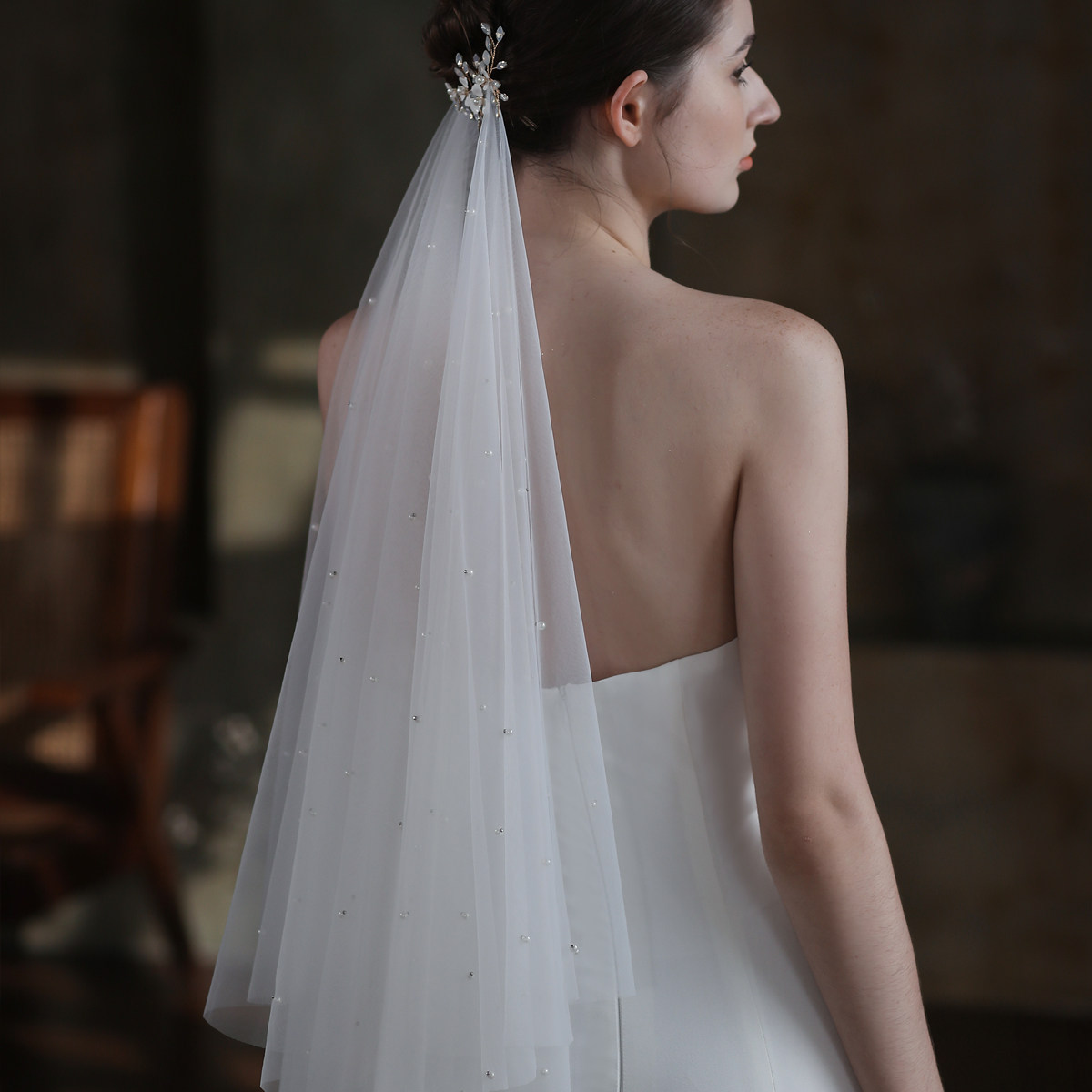 👰🏻这款头纱的设计简直太赞了!复古的V形设计,仿佛穿越时光,带给人一种怀旧又优雅的感觉。头纱上镶嵌的珍珠更是增添了几分高贵与神秘。💎