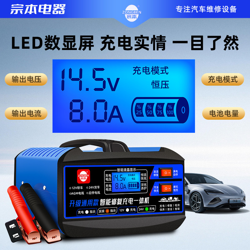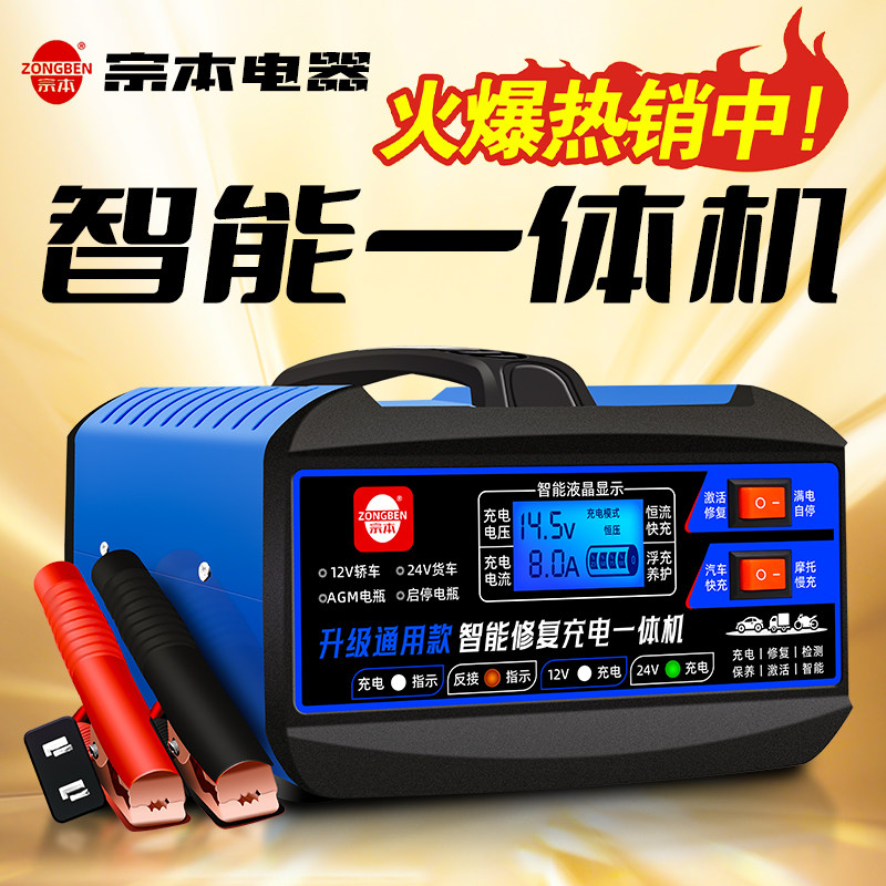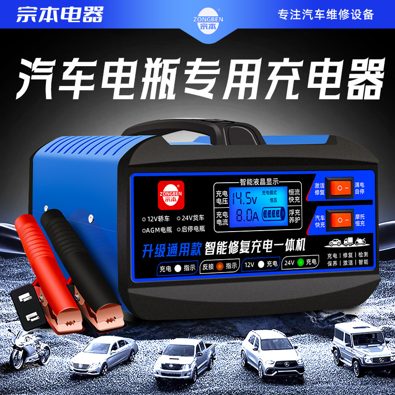 📚 宗本汽车电瓶充电器12v24v大功率摩托车充电机叉车农用车充电通用