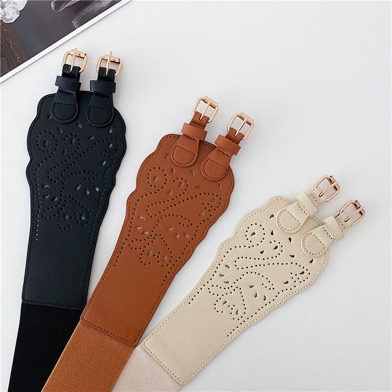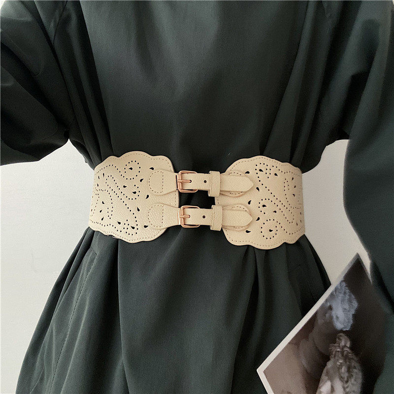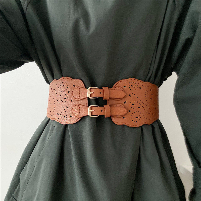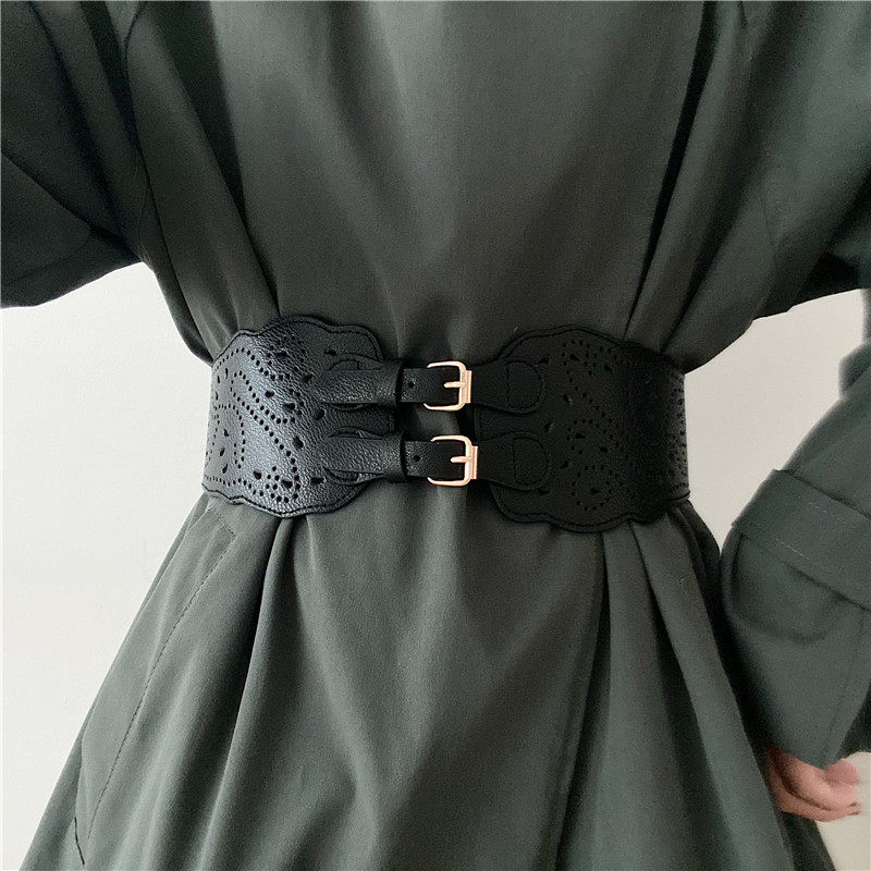 📚 双排孔复古弹力腰带女装饰配连衣裙子夏个性时尚百搭西装大衣腰封