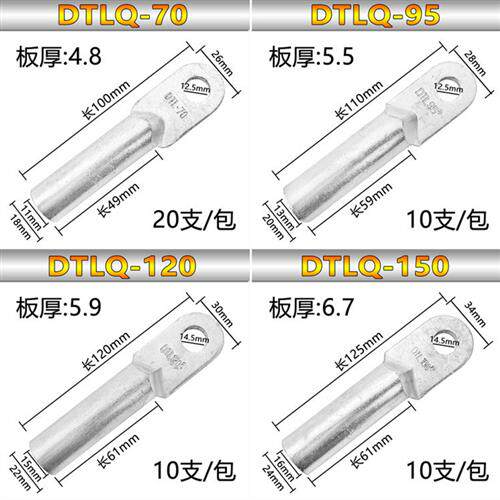 📚 国标冷压钎焊铜铝过渡接线端子DTLQ-16-400mm铜铝线鼻子皮子线耳