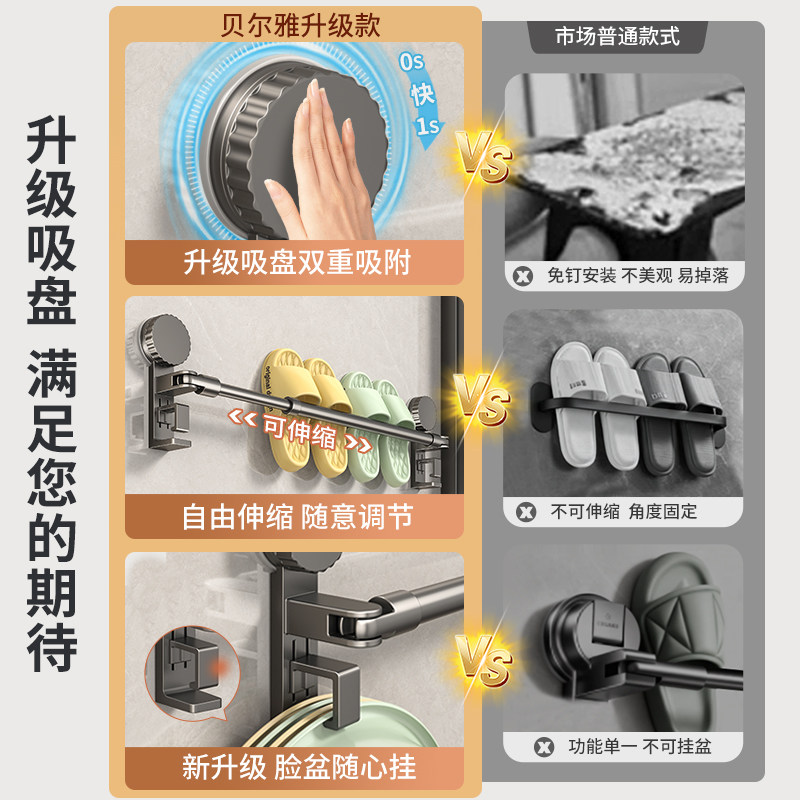 📚 吸盘卫生间拖鞋架浴室拖鞋挂架免打孔壁挂式伸缩门后鞋子收纳架子