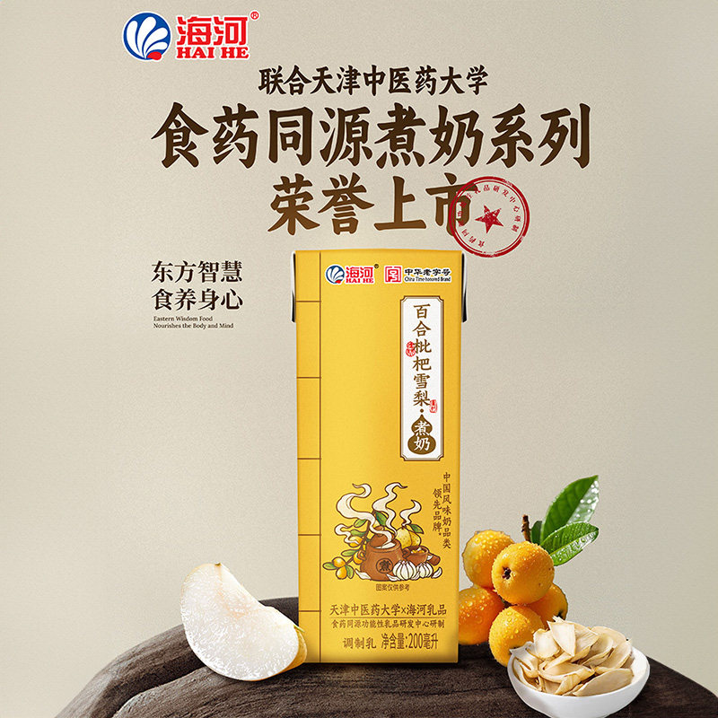 📚 海河牛奶百合枇杷雪梨煮奶200ml/盒联名天津中医药大学网红风味奶