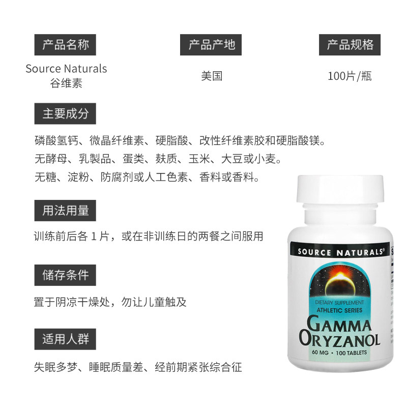 📚 美国Source Naturals Gamma Oryzanol天然谷维素情绪轻松安心睡眠