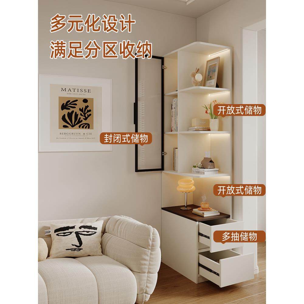📚 客厅角落书架柜玻璃门集成墙到天花板的存储架卧室定制柜窄垂直柜