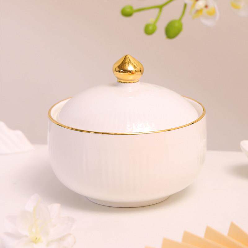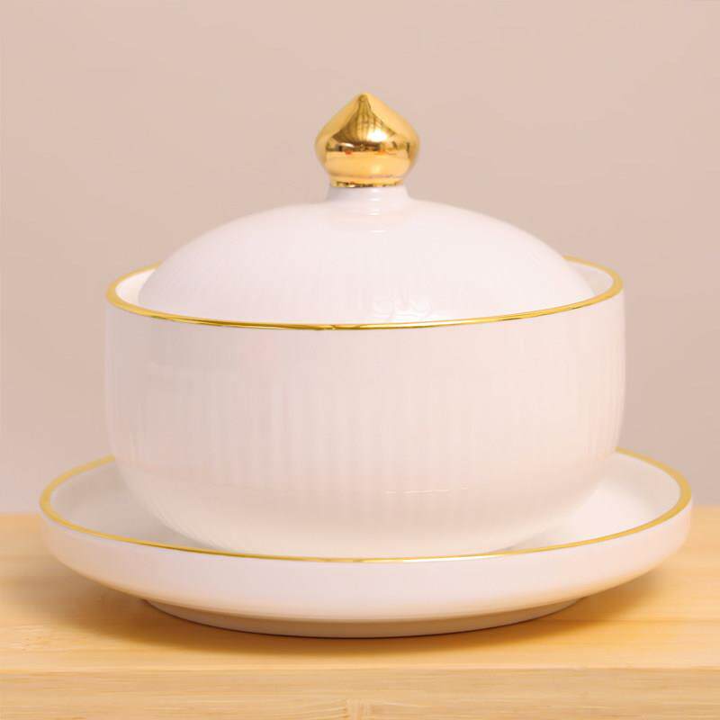 📚 白汤杯酒店餐厅商业有盖陶瓷炖锅防水炖金边燕窝杯甜点杯小炖锅