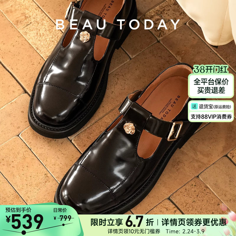 📚 BeauToday乐福鞋T字真皮黑色玛丽珍鞋女鞋2026春季单鞋厚底小皮鞋