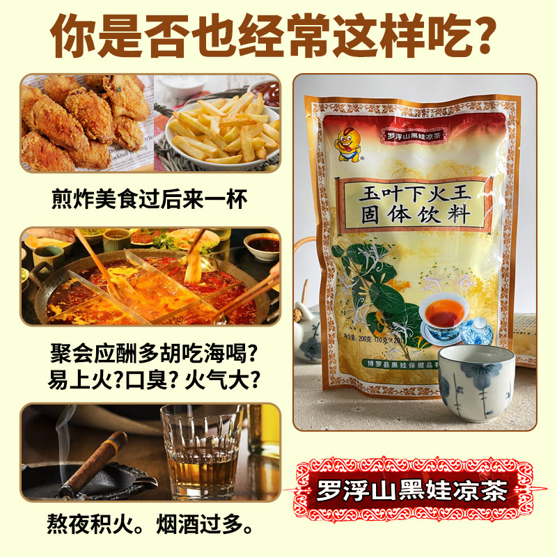 📚 玉叶下火王博罗黑娃清凉火热饮料冲剂颗粒罗浮山凉茶固体冲剂饮品