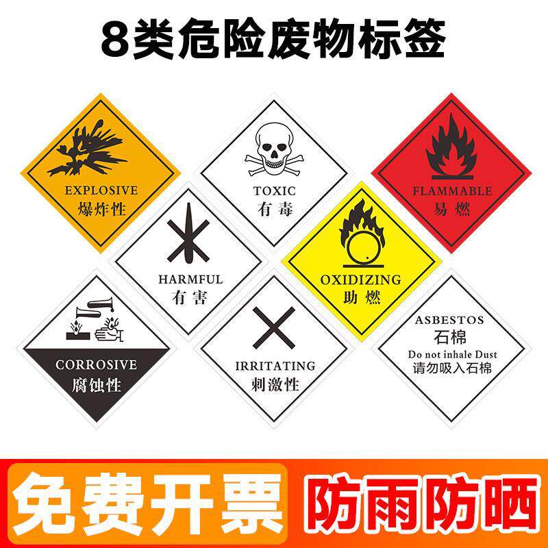📚 9类危废标签贴纸化学标签爆炸性有害性石棉标签易燃有毒标签废物
