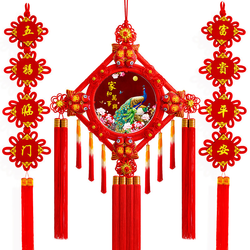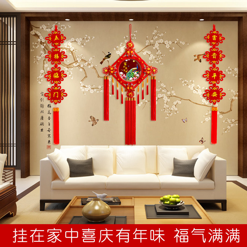 📚 中国结平安结客厅大号新年乔迁新居挂件电视墙对联桃木镇宅挂饰