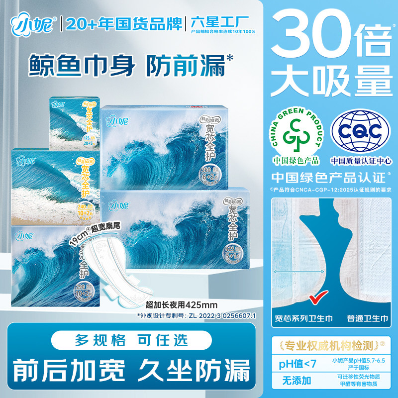 📚 小妮新国标卫生巾前后加宽久坐防侧漏绵柔日用夜用护垫姨妈巾