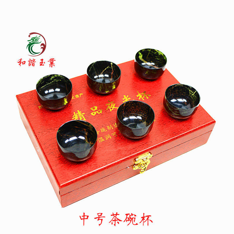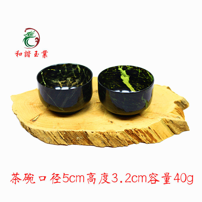 📚 酒泉夜光杯和谐石袋大号茶碗功夫茶杯酒 甘肃祁连玉墨玉鸳鸯玉