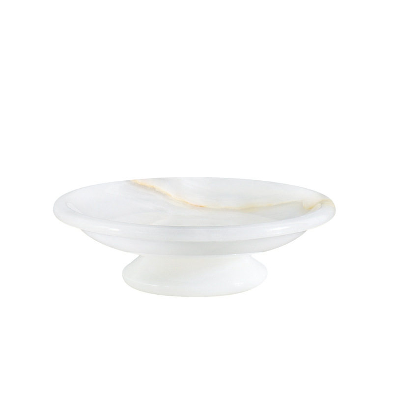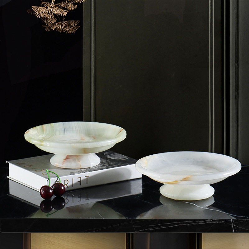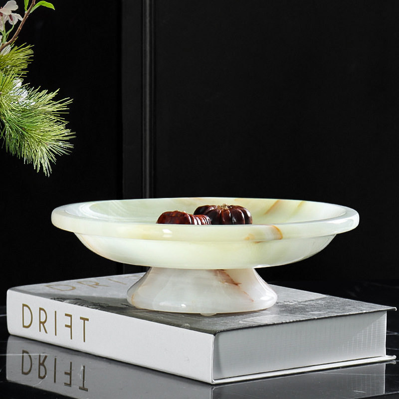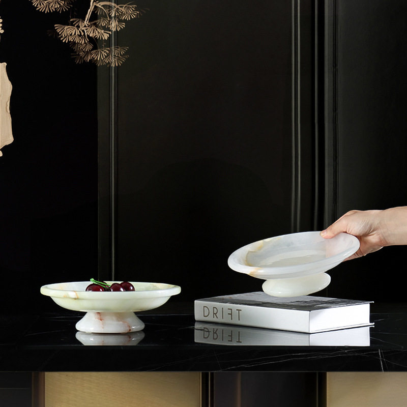 📚 天然玉石果盘餐点盘高脚托盘轻奢家居摆件中古风收纳盘民宿样板间