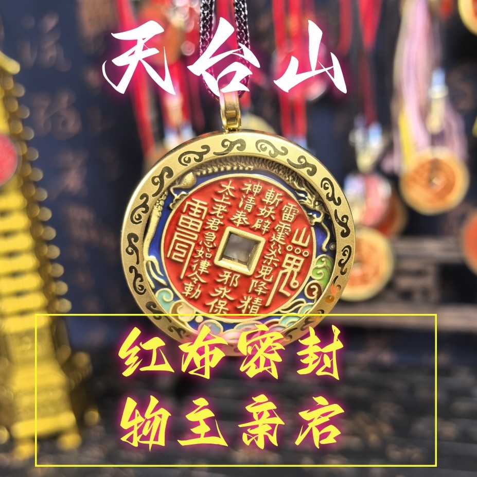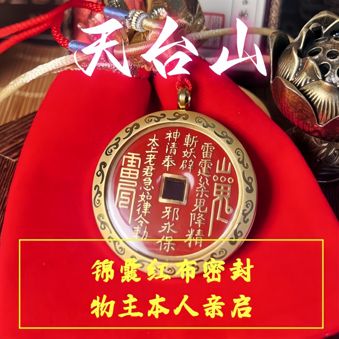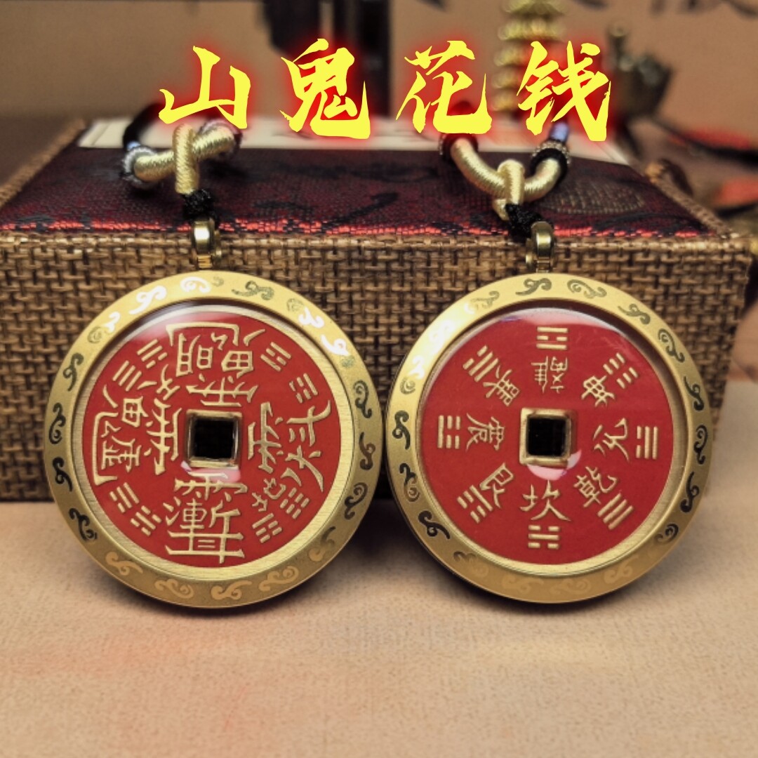 📚 【天台山南宗】山鬼花钱套装金属壳保护罩吊坠正宗朱砂纯黄铜真品