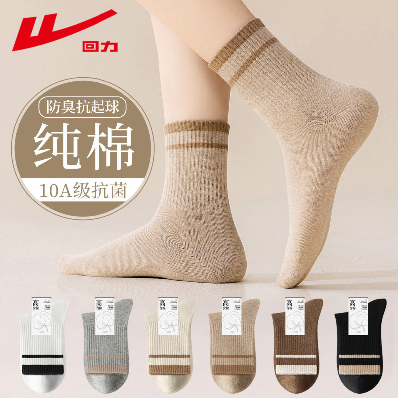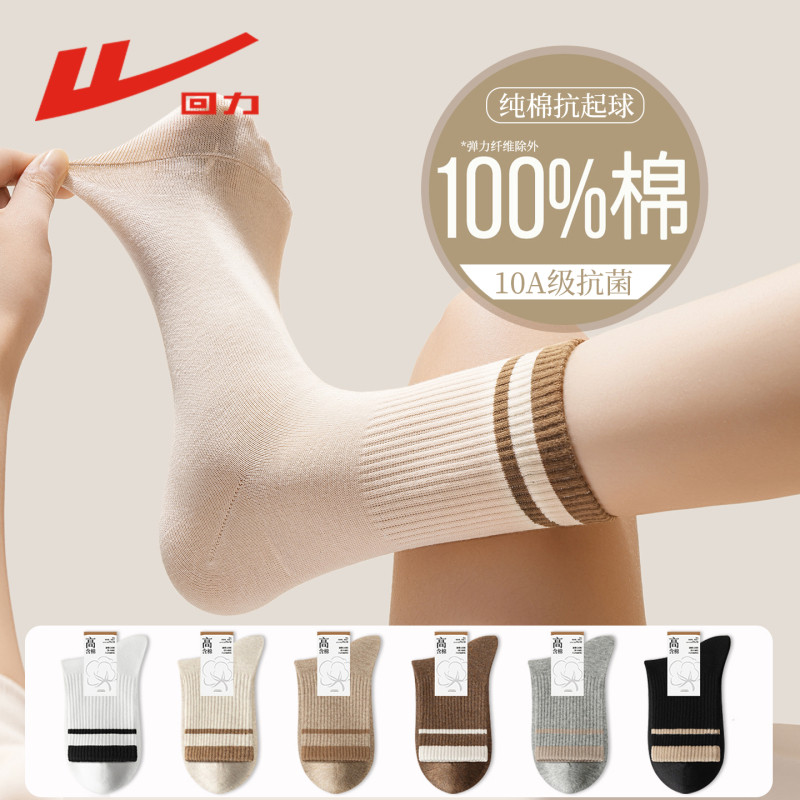 🍁初秋的微风轻轻吹过,回力女士纯棉袜子秋冬中筒袜10A抗菌吸汗防臭美拉德女款来啦!券后价只需27.6元,你怎能错过?