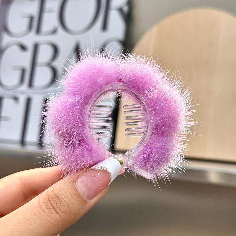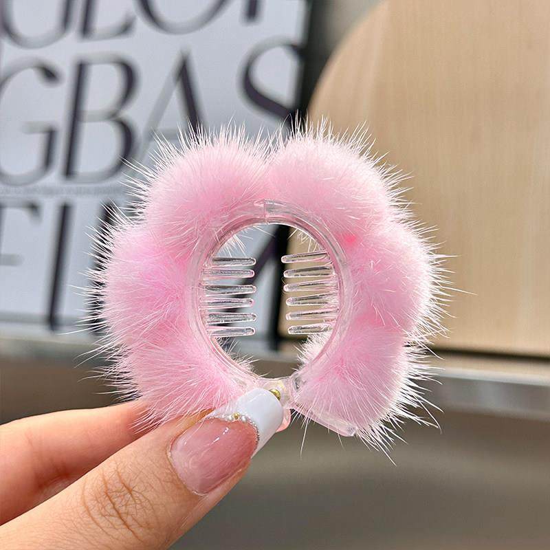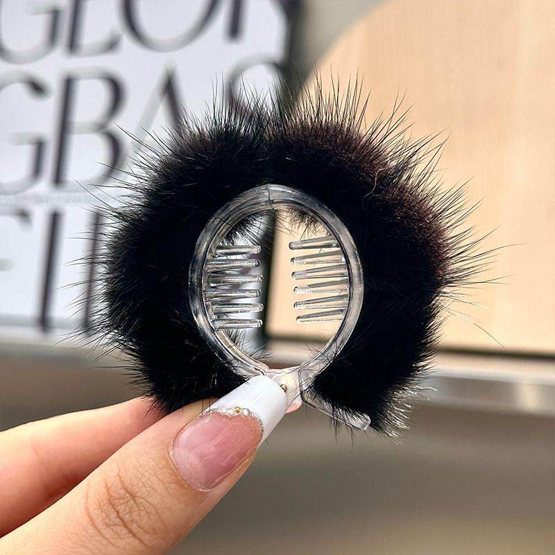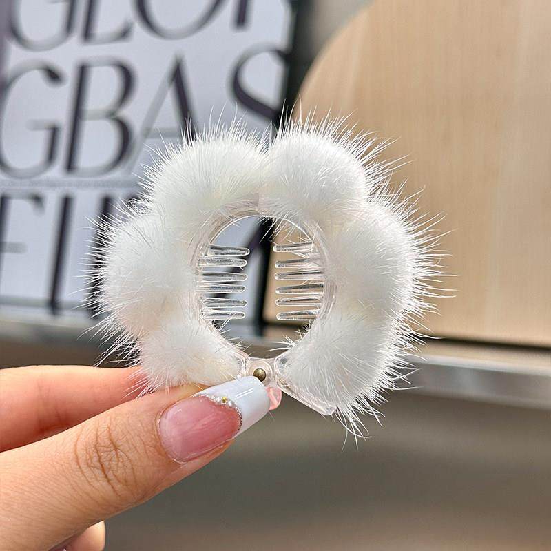 📚 休闲和可爱的水貂球头发尾夹,优雅的毛茸茸的头发夹,小头发量在