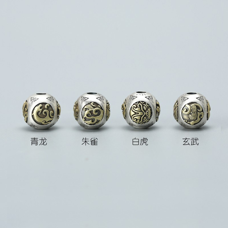 📚 925银隔珠四大神兽青龙白虎玄武朱雀方圆珠足银手串手链配件