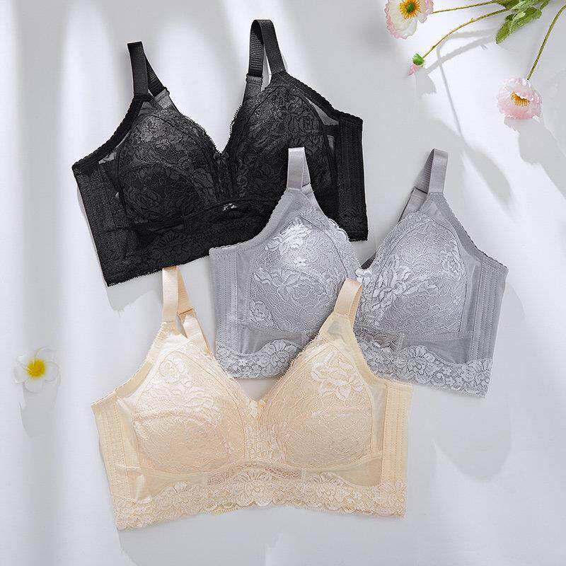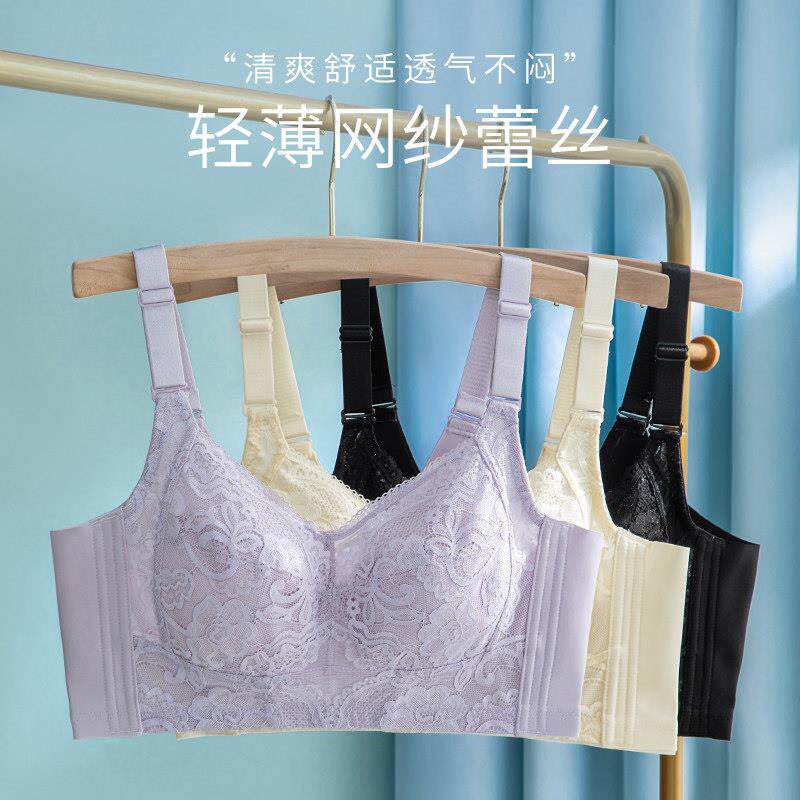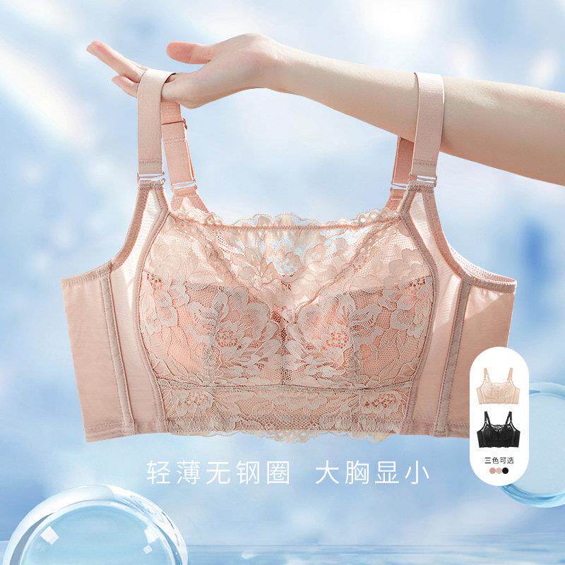 📚 Msshe大尺码女装大胸显小内衣轻薄防走光无钢圈全罩水晶杯蕾丝小
