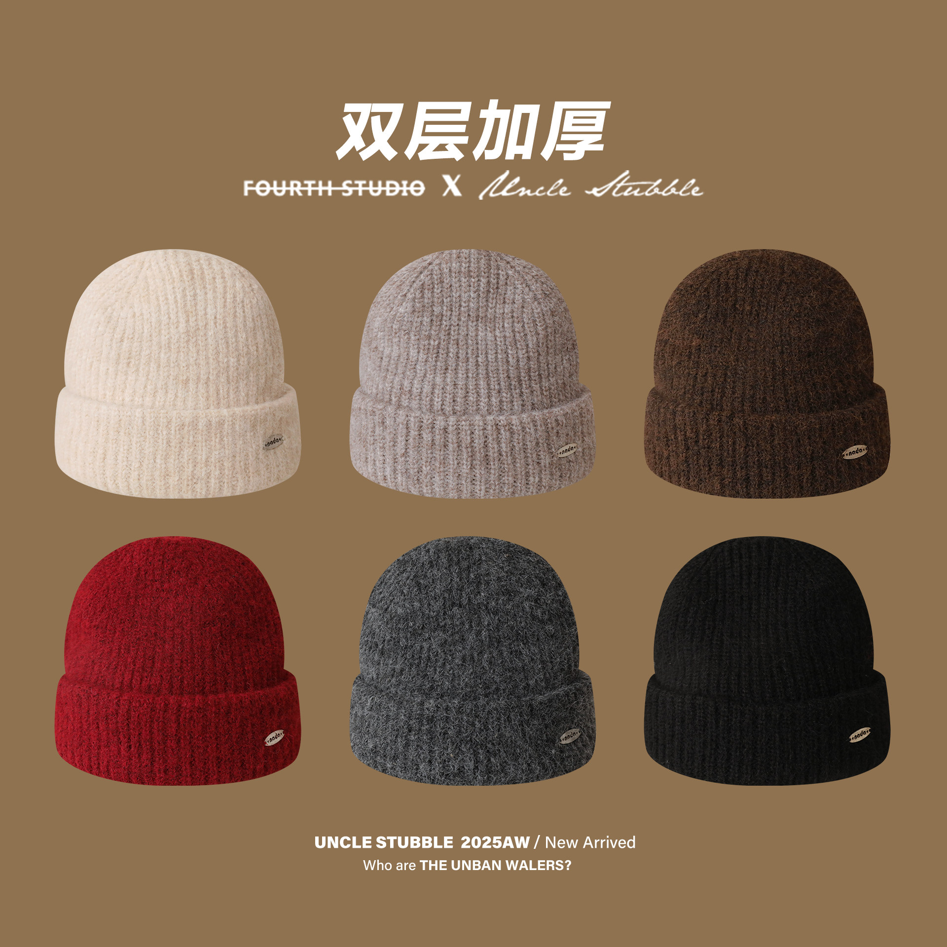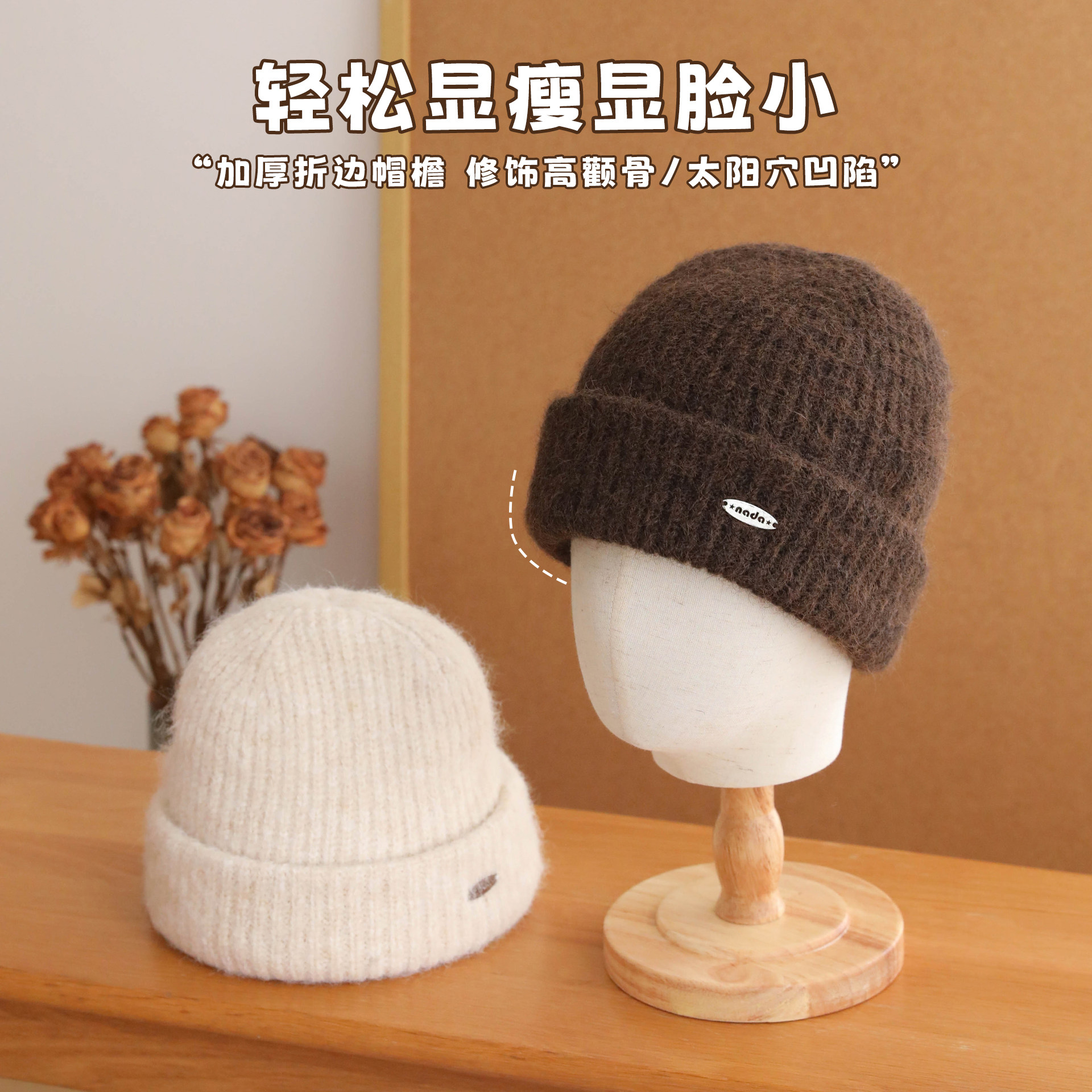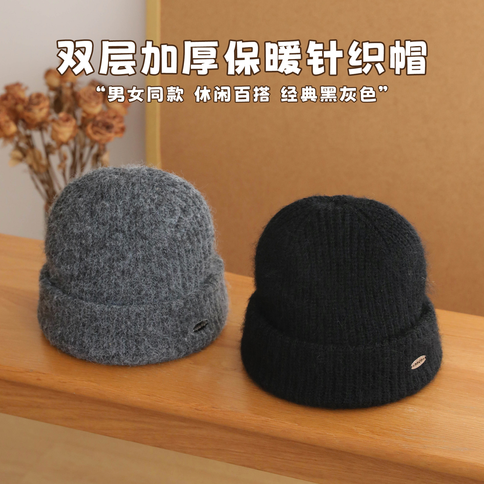 📚 双层加厚针织帽冬季纯色保暖冷帽男女同款日系学生百搭护耳毛线帽