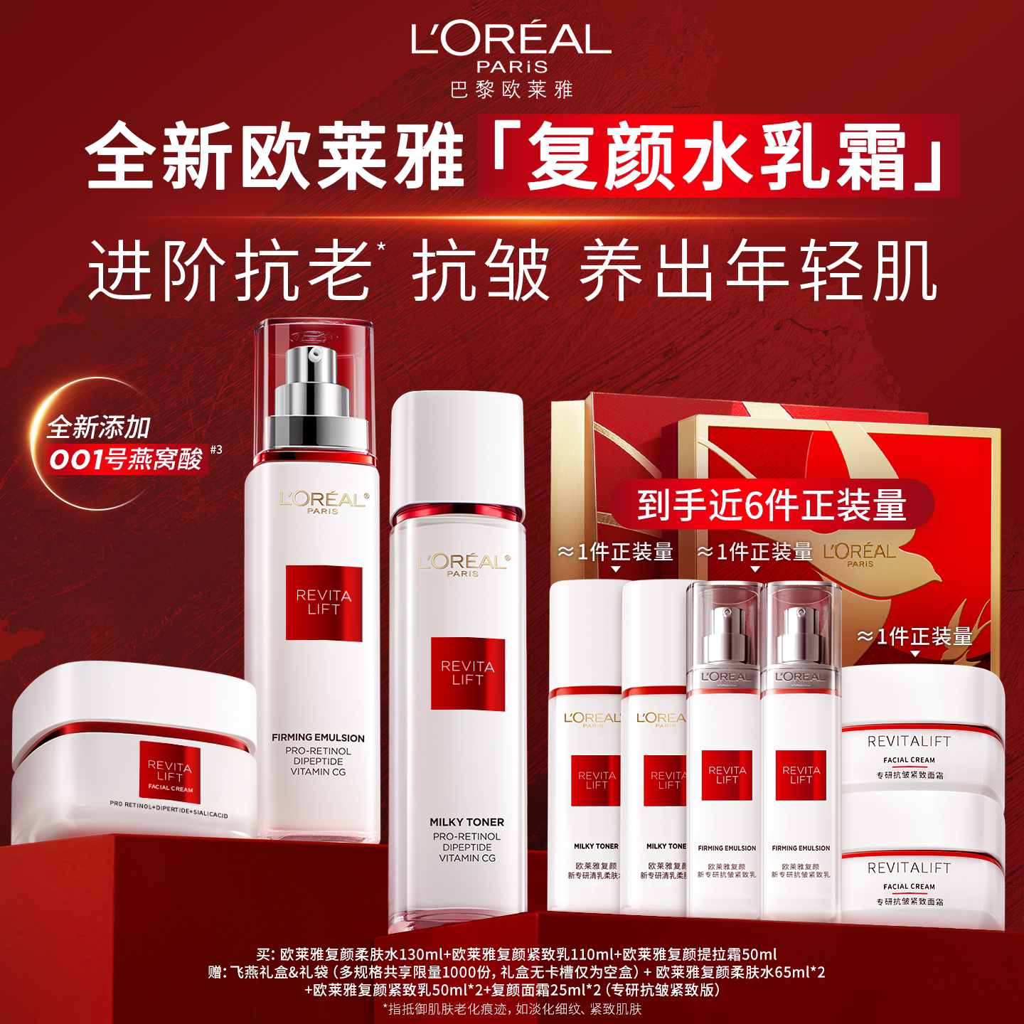 📚 【直播间限时补贴】欧莱雅复颜水乳套装燕窝酸面霜洁面乳紧致抗皱