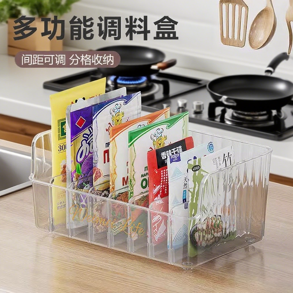 📚 调料收纳盒厨房家用多功能分格盘袋装多格一体调味品罐置物架