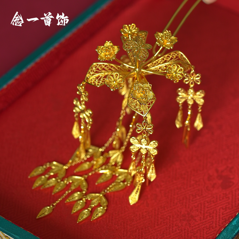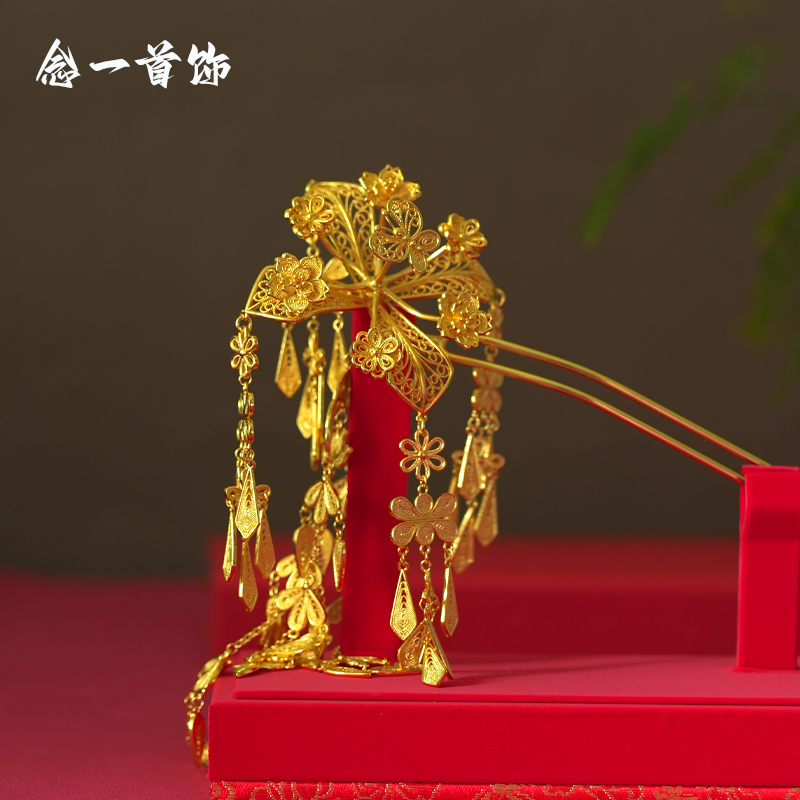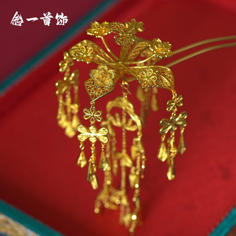 📚 镀金古风步摇发饰蝶恋花颤簪金掐丝颤颤发簪凤钗金簪子汉服配饰