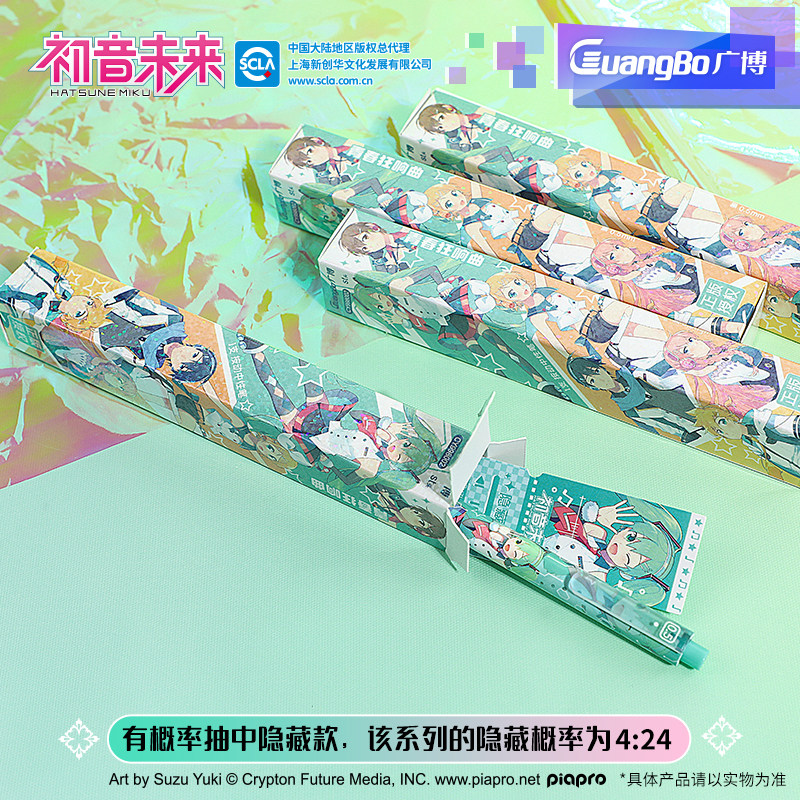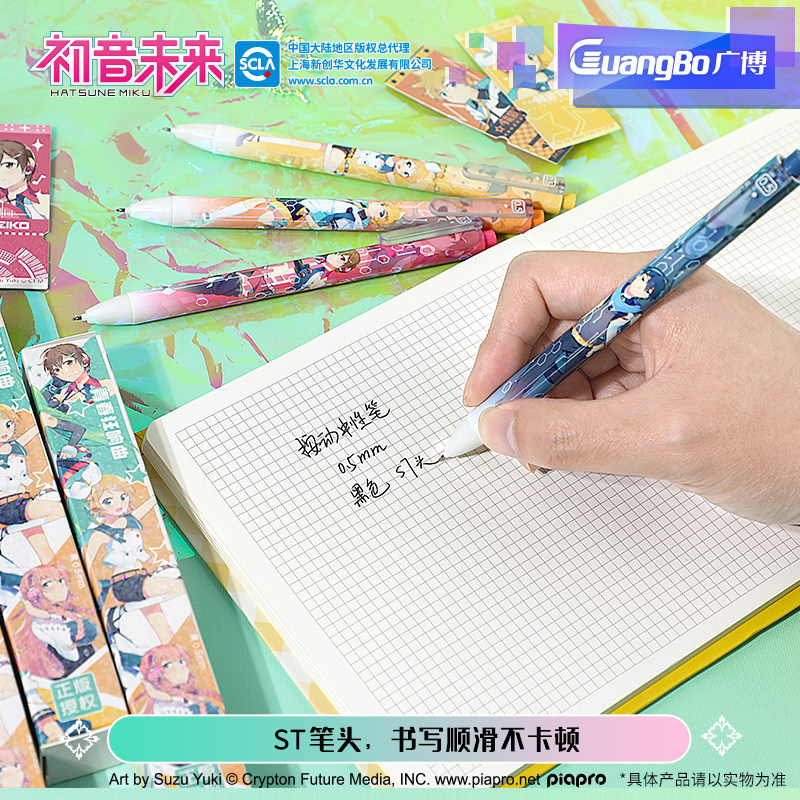 📚 广博初音未来盲盒笔ST速干中性笔刷题笔按动中性笔初中生文具小学三年级中性笔软握笔黑笔联名周边青春狂想曲