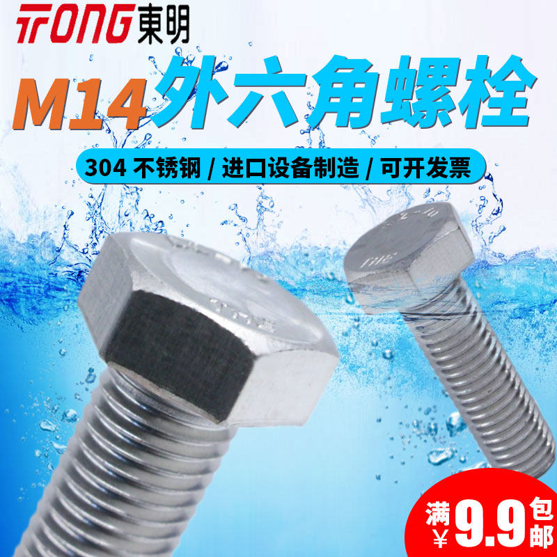 📚 东明304不锈钢外六角螺丝M14全牙加长螺钉DIN933国标单头六角螺栓