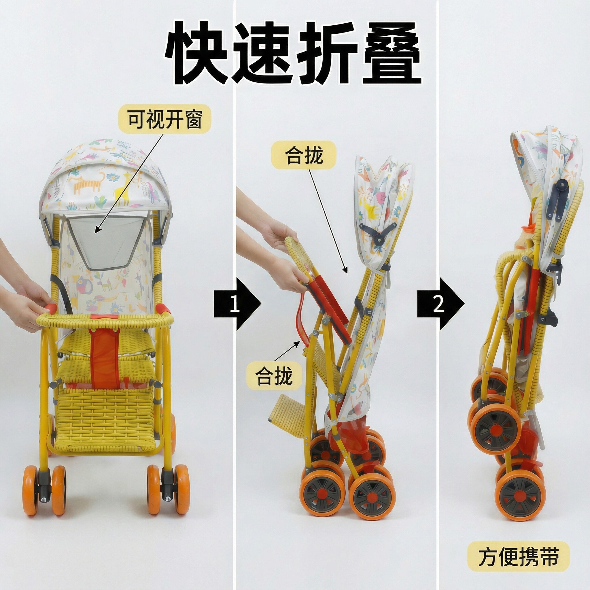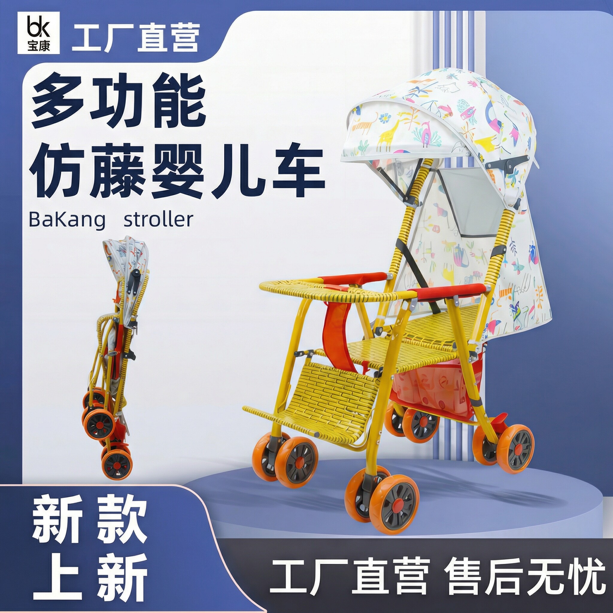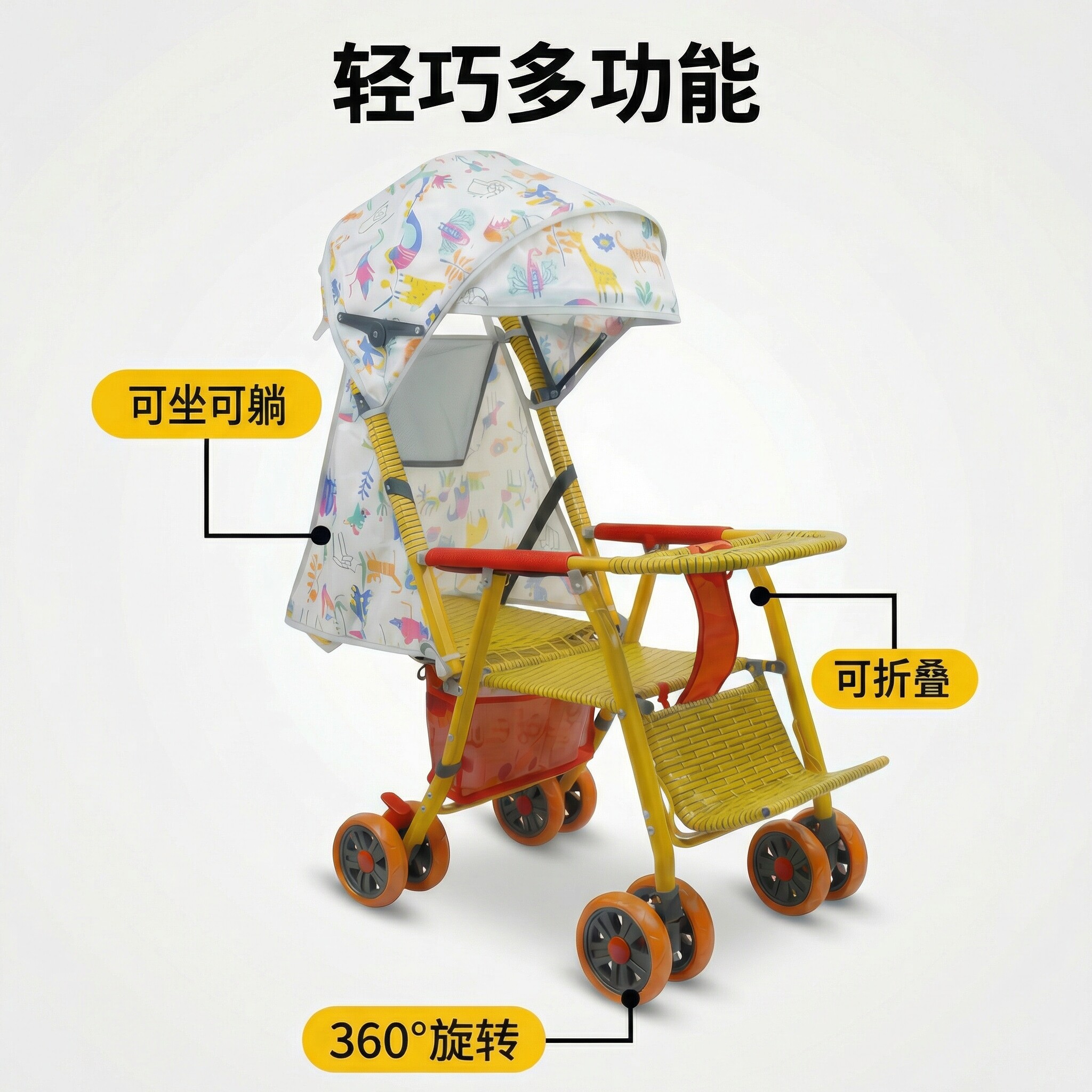 📚 仿藤婴儿车竹藤推车藤椅车可坐可躺夏季宝宝便携折叠小孩溜娃神器