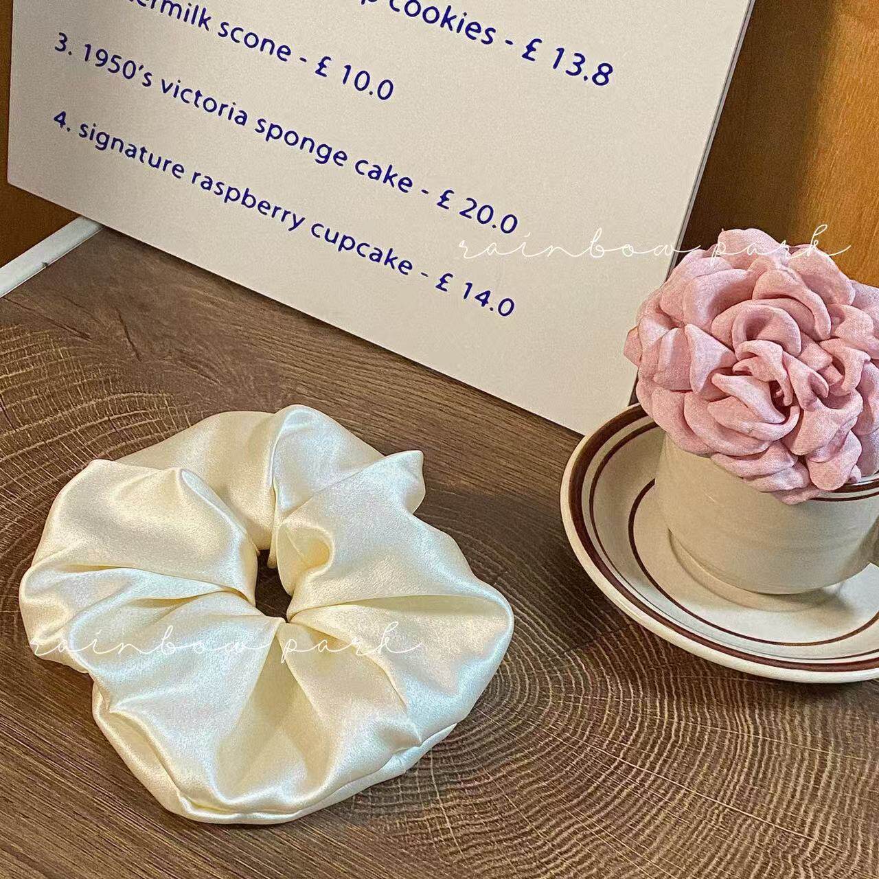📚 【3件8折】30姆米真丝发圈芥末黄大肠圈花苞头重磅桑蚕丝发绳发饰