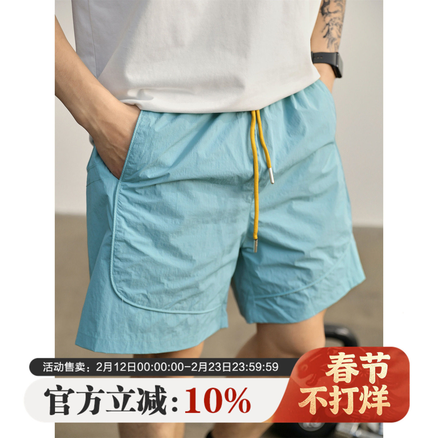 📚 LUUD 户外防晒不闷热宽松直筒短裤男潮流湖光蓝色松紧腰五分裤子