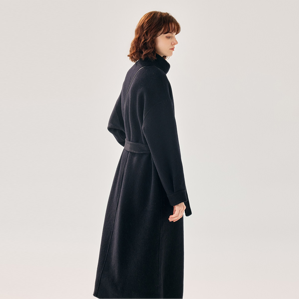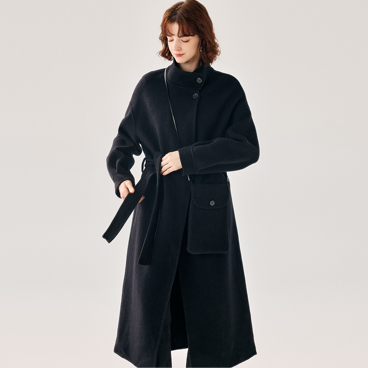 📚 纳纹【送包包】25秋冬款立领气质保暖外套中长款休闲双面呢大衣女