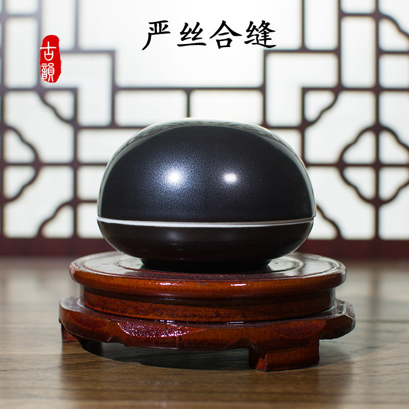 📚 景德镇大中小号黑色印泥盒仿古印缸文房四宝篆刻印泥瓷缸高顶盖