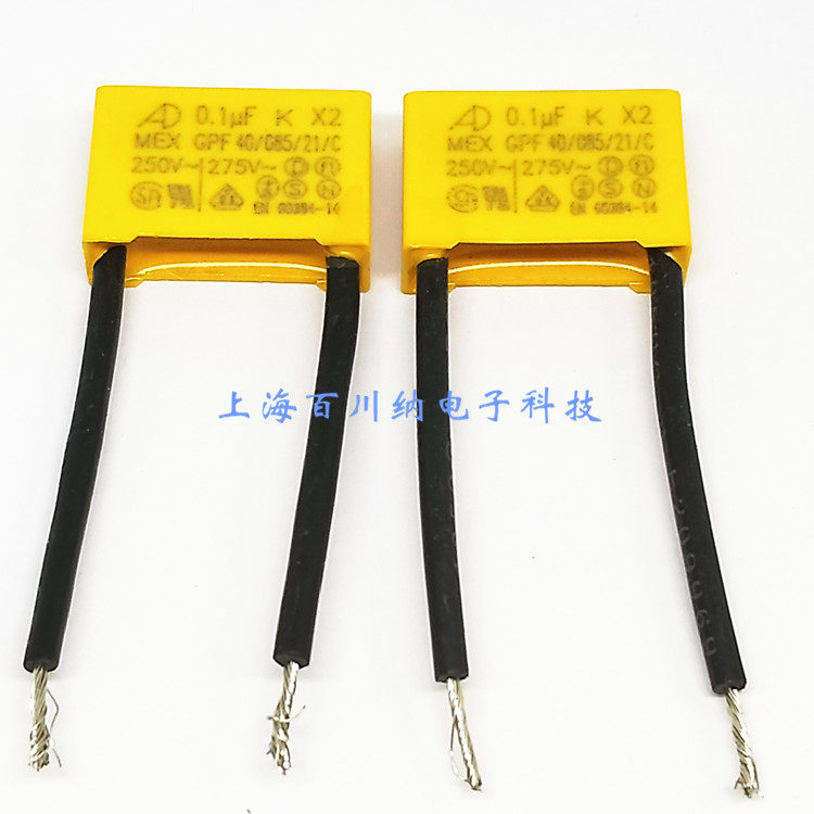 📚 带引线安规电容 275V 0.1UF 104 脚距15mm 电线脚 线长量多可订做